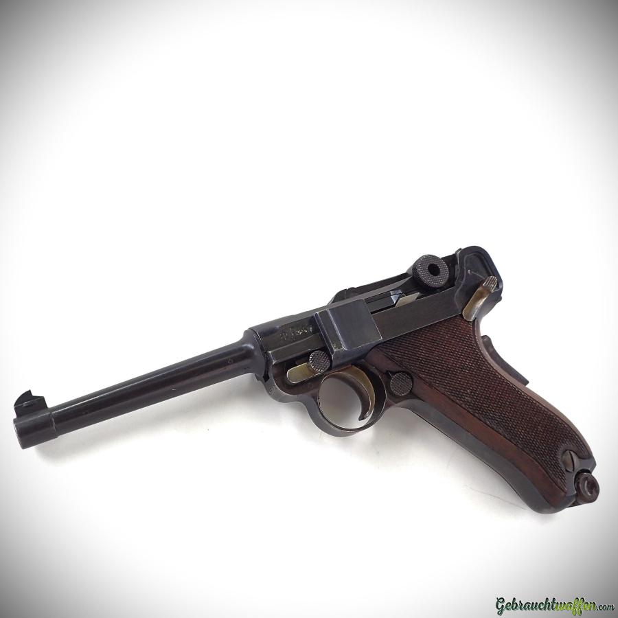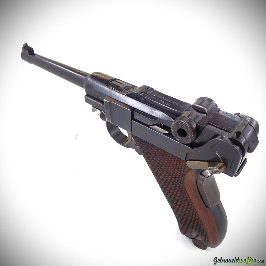 W+F pistol mod. Parabellum 06/24, cal. 7.65P, in very good condition, made in 1930, comes with its leather case and second magazine.