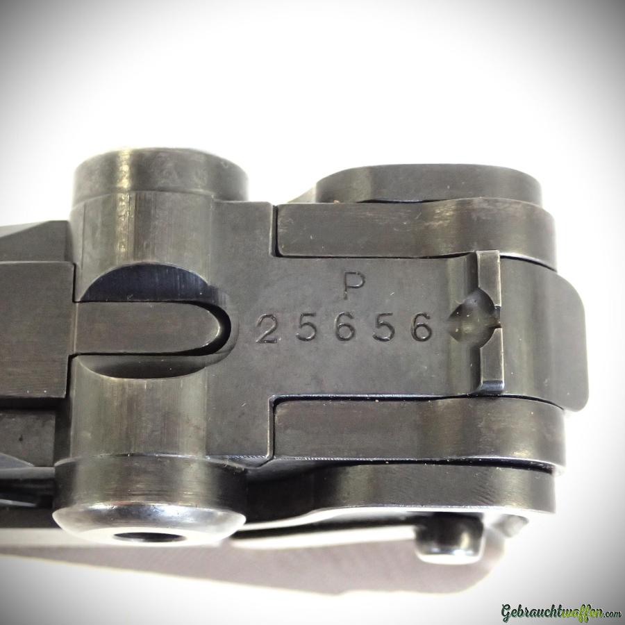 W+F pistol mod. Parabellum 29, cal. 7.65P, series P (private), brown plates, made in 1940, in very good condition, supplied with holster and 2nd magazine.