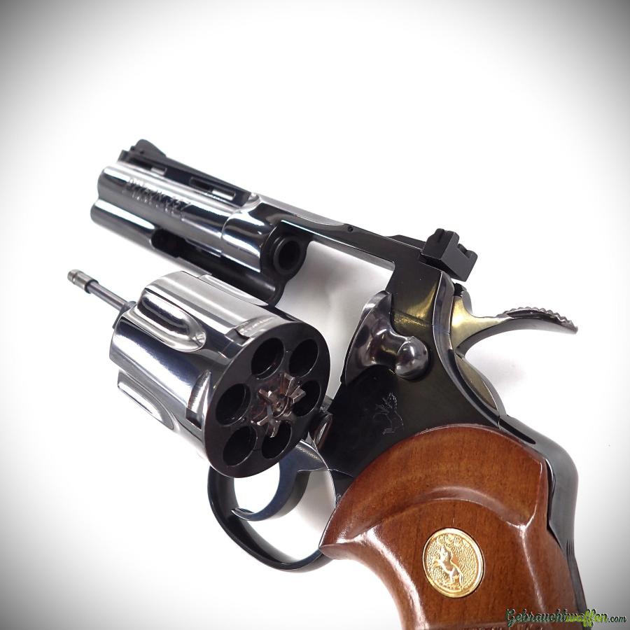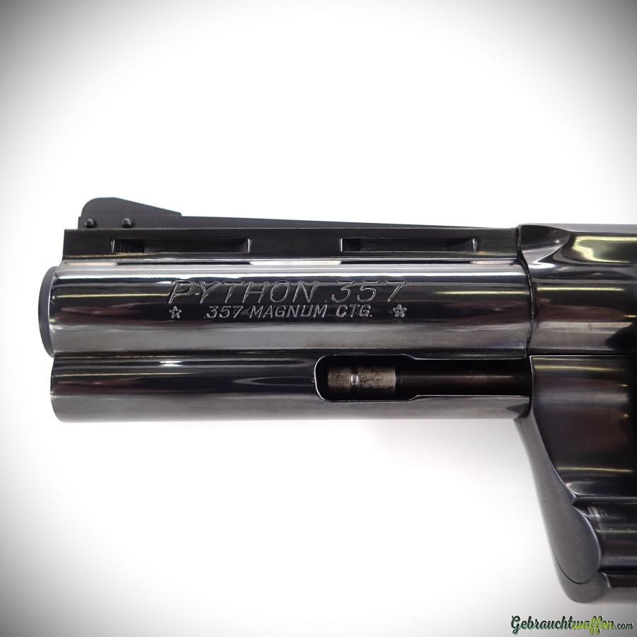 Revolver Colt mod. Python .357, Kal. 357mag, 4-Zoll-Lauf, sehr schöne Bronzierung, sehr gutes Timing und Trommelverriegelung, hergestellt 1977, in sehr gutem Zustand.