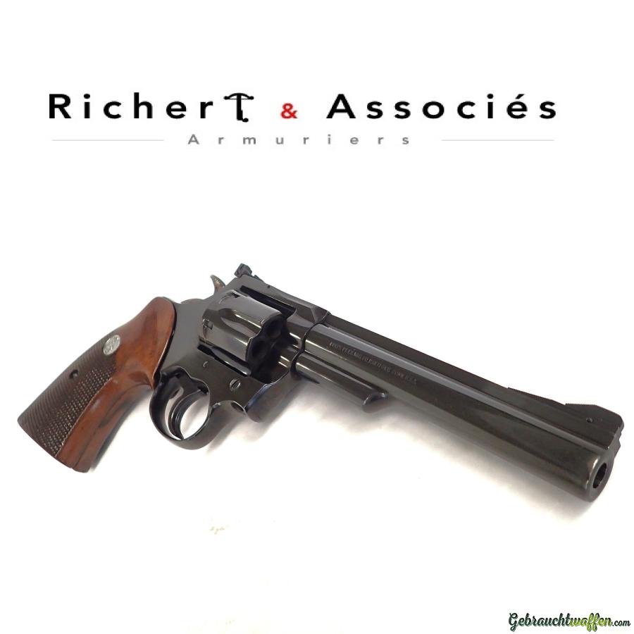 Schöner Colt Revolver, Mod. Trooper MKIII, Kal. 357mag, 6-Zoll-Lauf, hat eine schöne Bronzierung und schöne Holzplättchen, in sehr gutem Zustand.