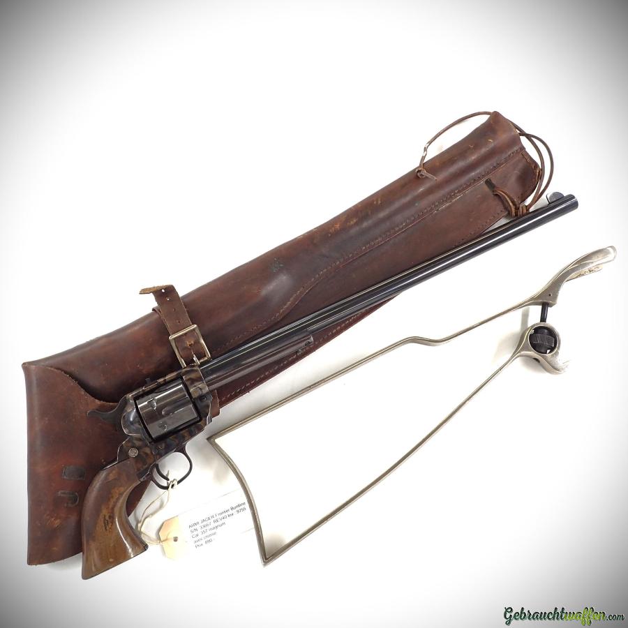 Armi Jäger Frontier Buntline Revolver, Kaliber .357 Magnum, 6-schüssig, 40,6 cm Lauf, gehärtetes Gehäuse, in sehr gutem Zustand, inklusive abnehmbarem Metallgriff und langem Lederholster.