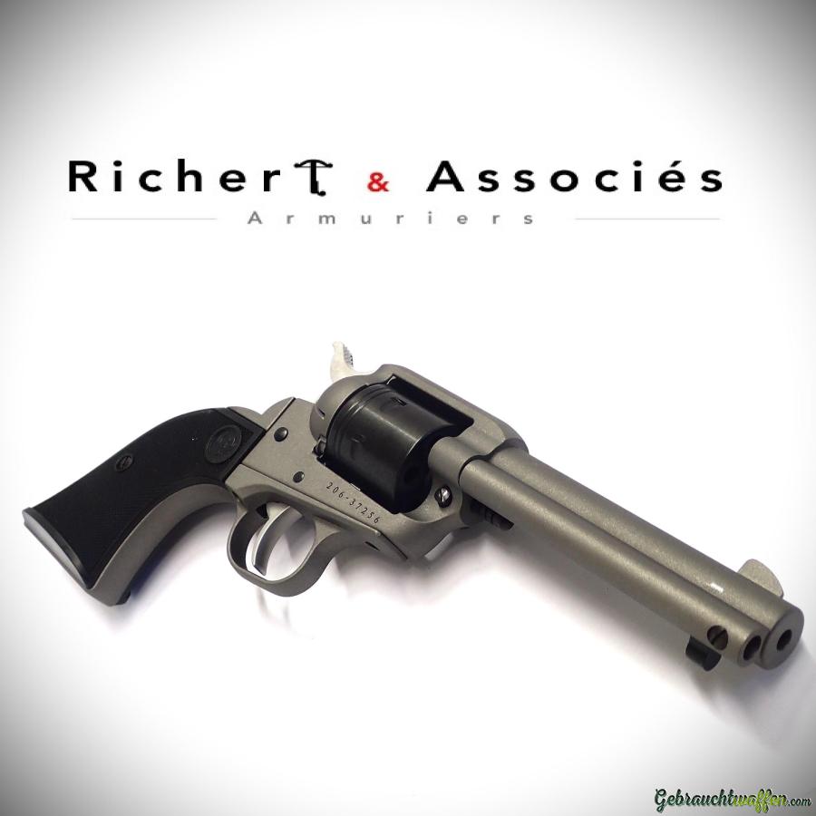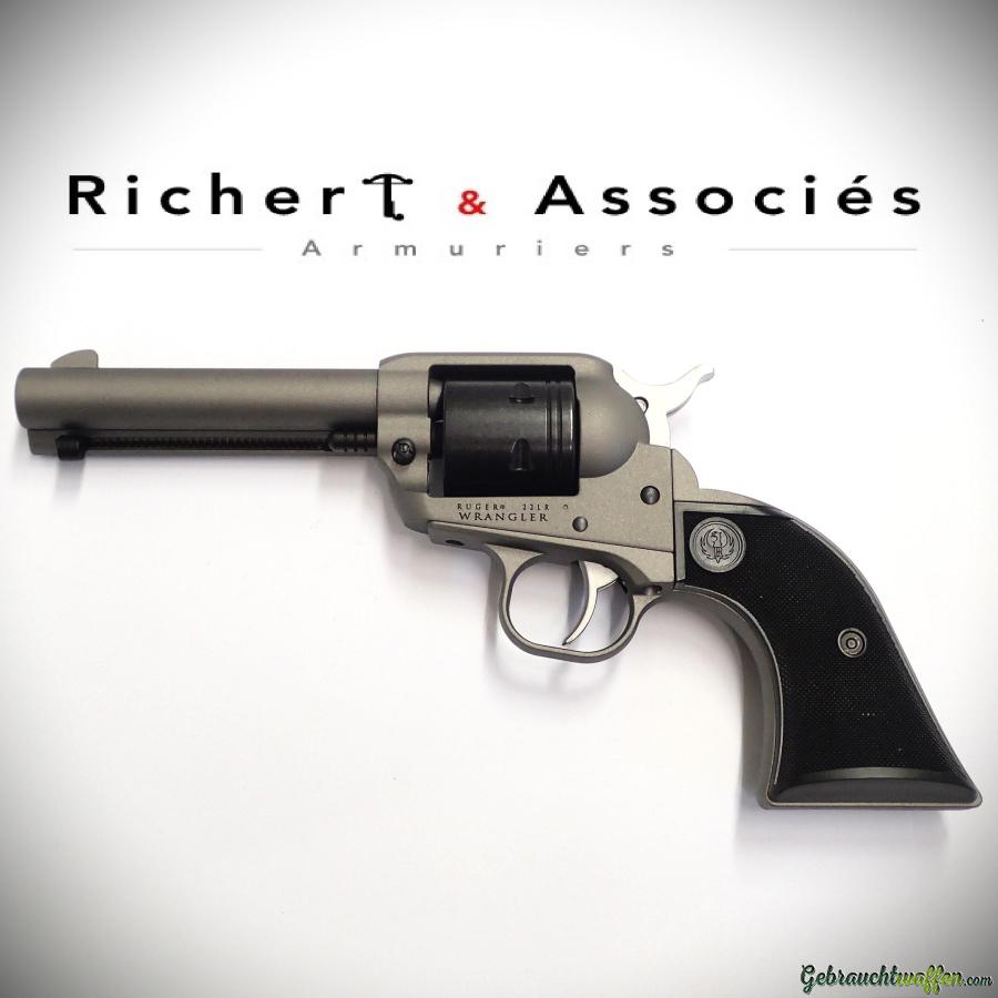 Revolver Ruger mod. Wrangler, cal. 22LR, 6 coups, canon de 4 pouces, arme neuve, jamais tiré, fabrication de 2022, livré avec sa boîte d'origine. Revolver sympa genre western, parfait pour la pratique du tir à petit prix, plusieurs pièces disponibles.