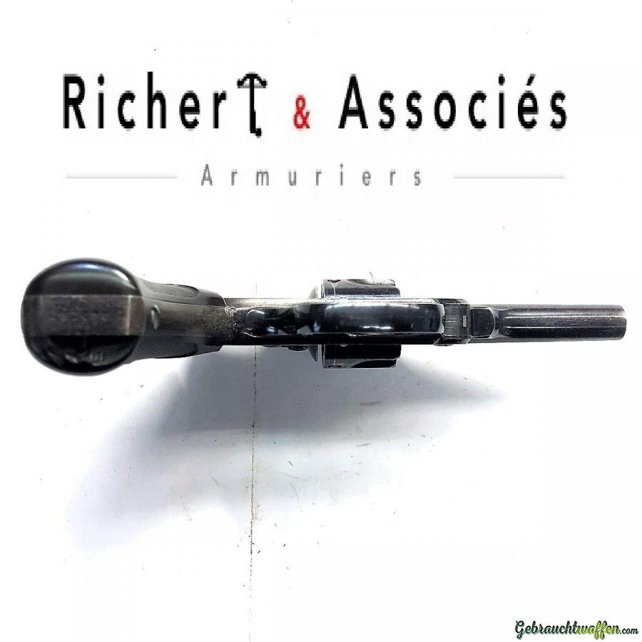 Revolver S&W Safety Hammerless 2nd Model, cal. 32S&W, in gutem Zustand, mit einer kleinen Schramme an der Ferse des rechten Schafts, die von den Seiten nicht zu sehen ist.