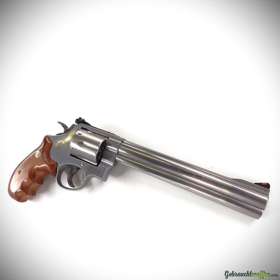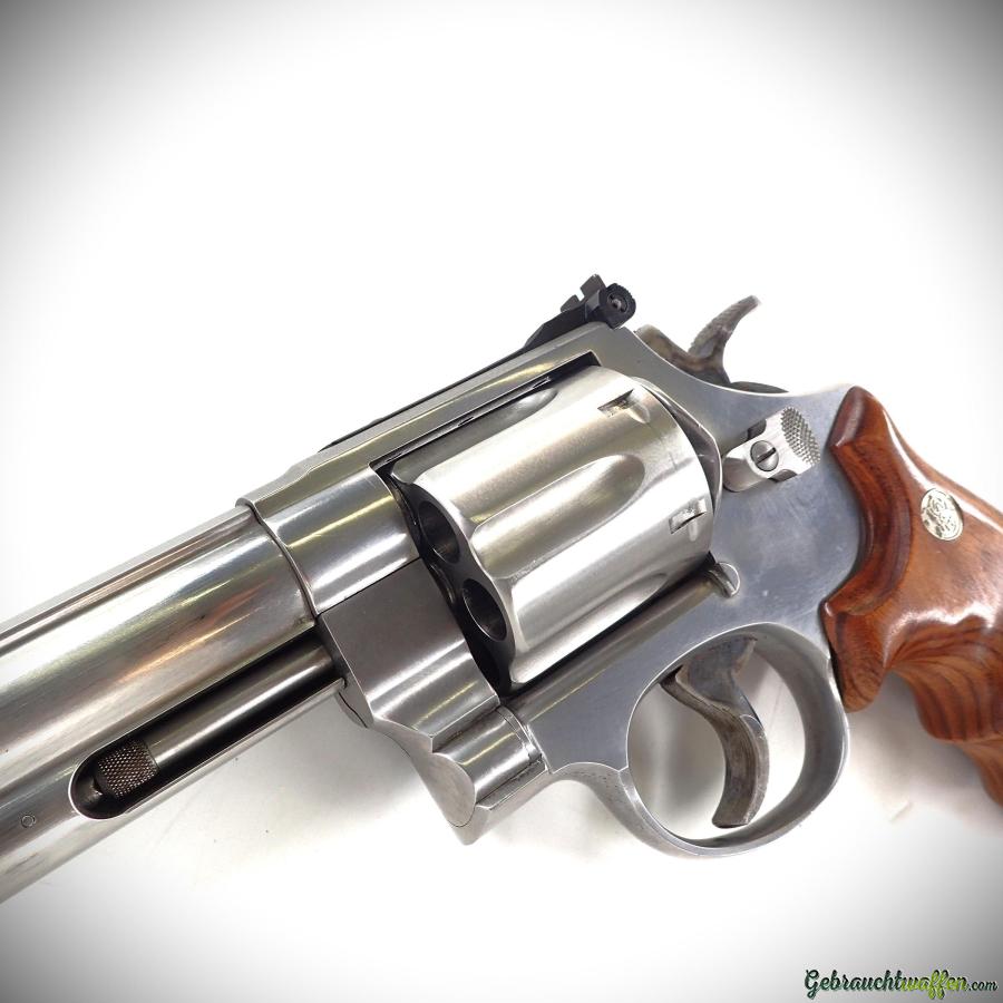 Smith & Wesson Revolver Modell 629-4 Classic DX, Kaliber .44 Magnum, 6 Schuss, 8-3/8" Lauf, verstellbare Kimme und abnehmbares Korn, Baujahr 1993, in exzellentem Zustand, inklusive Originalverpackung und zwei Paar Griffschalen (Holz und Gummi).