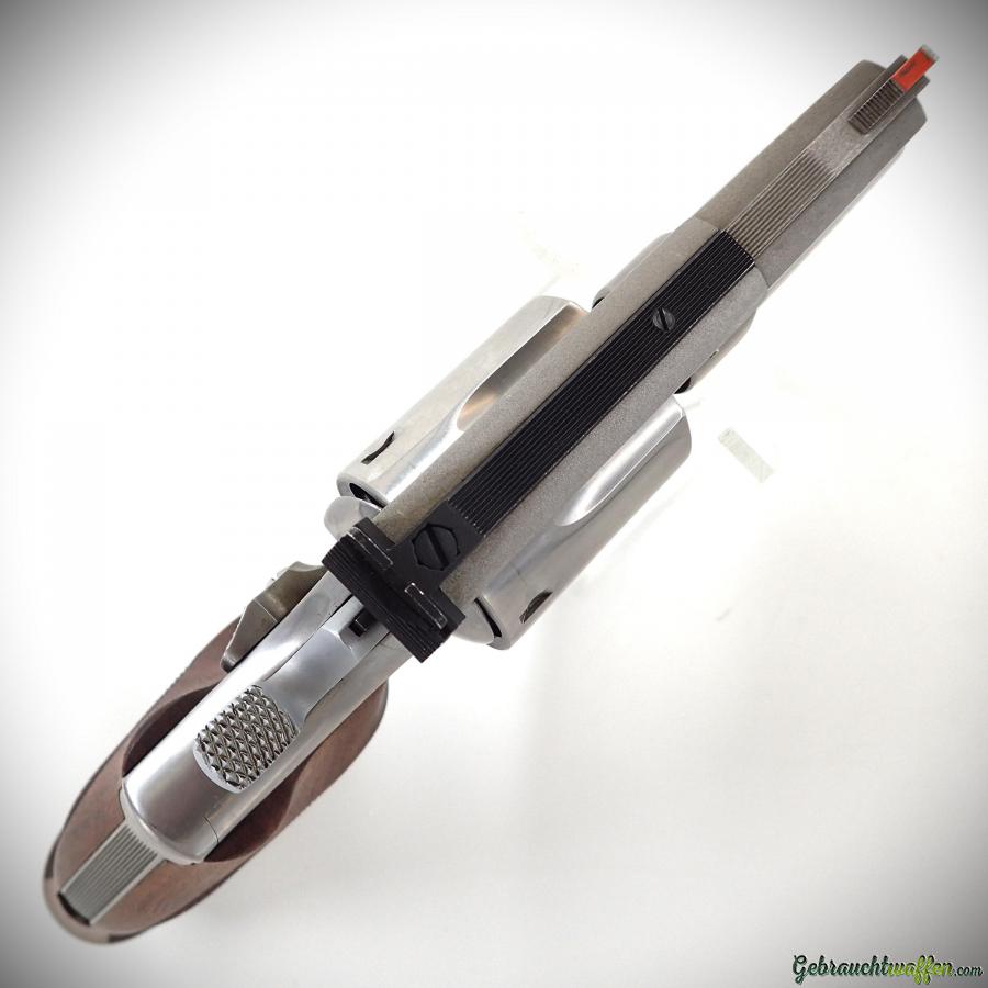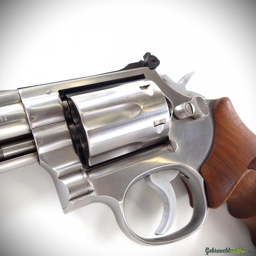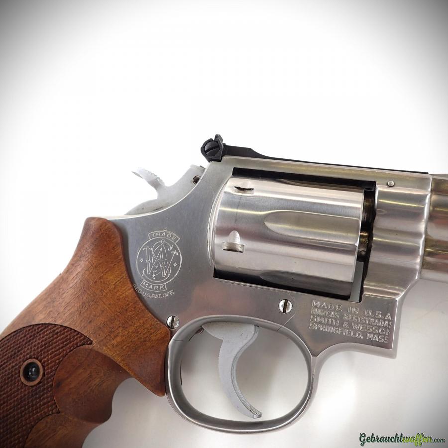Smith & Wesson Mod. 66-1 "Combat Magnum"-Revolver, Kaliber 357 Mag, 6 Schuss, 2,5-Zoll-Stiftlauf, verstellbare Kimme, Nill Griff Holzgriff "Combat", Baujahr 1977, in sehr gutem Zustand.