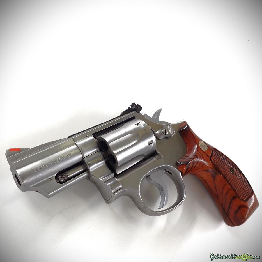 Revolver Smith & Wesson Mod. 66-1 "Combat Magnum", Kaliber 357mag, 6 Schuss, 2,5-Zoll-Lauf mit Stiftbefestigung, verstellbare Kimme, S&W-Griff aus Holz in "Bananenform", hergestellt 1980, in ausgezeichnetem Zustand, Lieferung mit Lederhalfter.