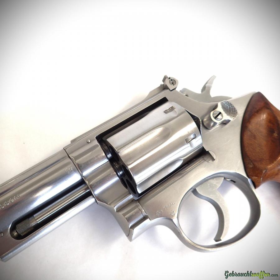 S&W Revolver Modell 66 „no-dash“, Kaliber .357mag, 4-Zoll-Lauf, in mattem Edelstahl-Finish, hergestellt 1974, in ausgezeichnetem Zustand. Das Modell 66 wird als „.357 Combat Magnum“ beschrieben, da es die Edelstahlversion des S&W 19 ist.
