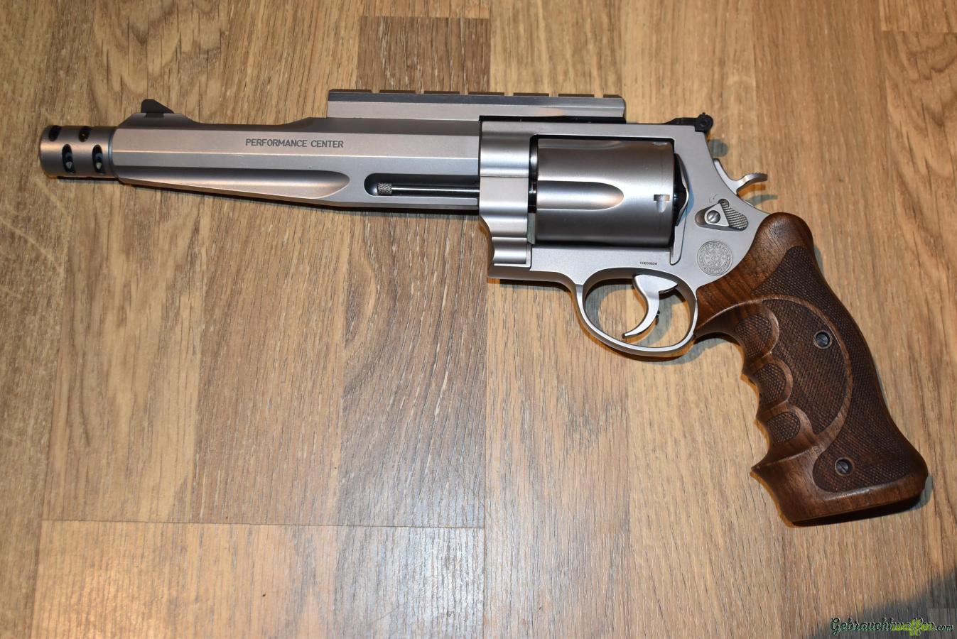 Zu verkaufen: Smith & Wesson Performance Center 500 7.5" mit Holzgriff und Picatinny-Schiene. Der Revolver hat keine 20 Schuss durch und ist absolut neuwertig. Gegen Aufpreis hätte ich auch noch jede Menge Munition dazu. Der originale Gummigriff ist auch mit dabei.