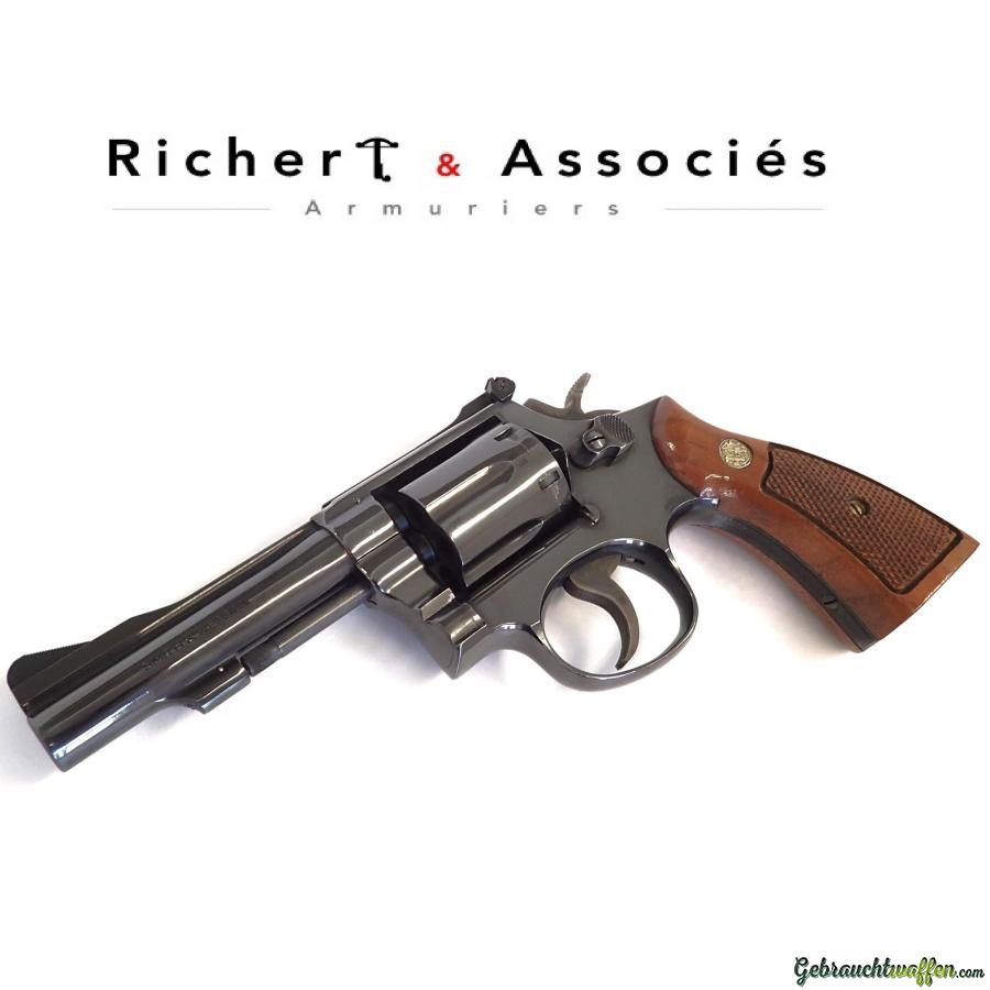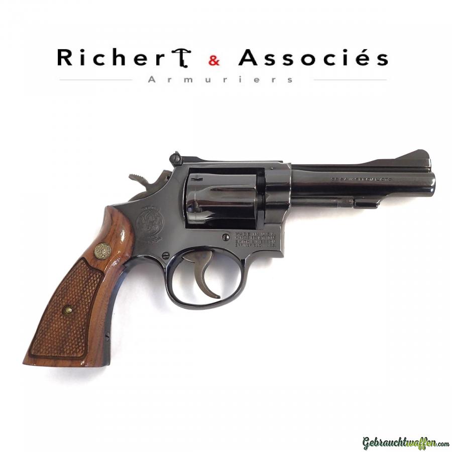 Revolver Smith & Wesson, mod. 15-3, cal. 38spl, canon conique de 4 pouces, hausse réglable, en excellent état, livré avec sa boîte et accessoires d'origine.