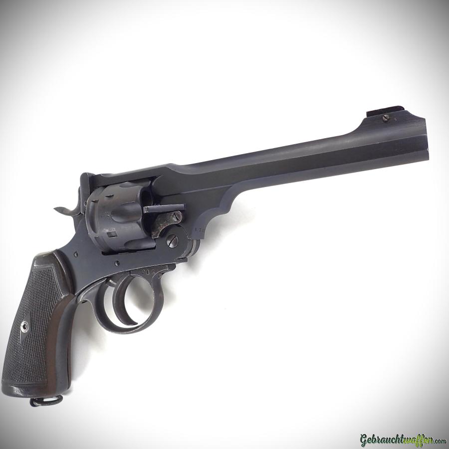 Revolver à brisure Webley mod. VI, cal. 455 Webley, 6 coups, canon de 5 pouces, plaquettes en bakélite, en bon état.