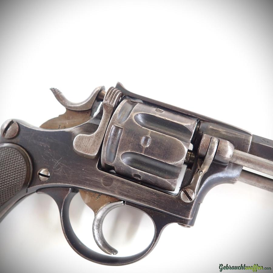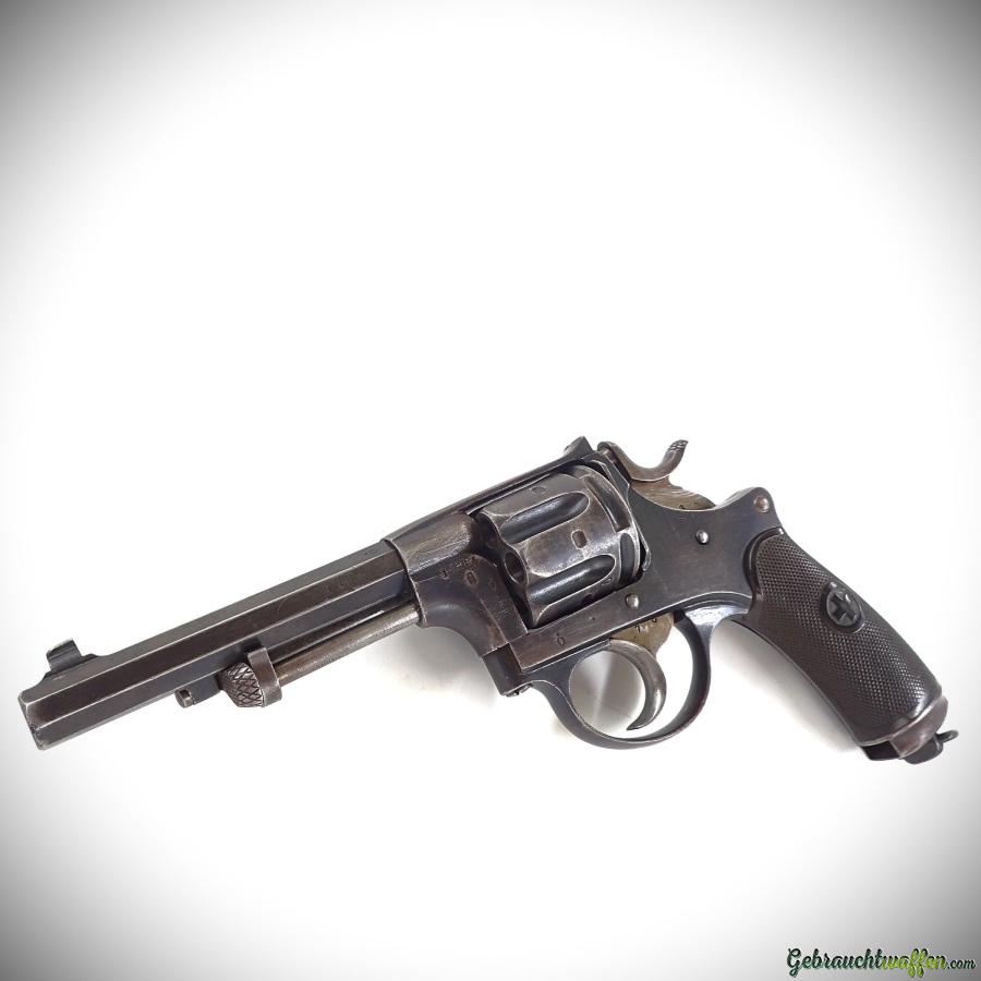 Revolver W+F mod. 1882. cal. 7.5Rev, 6 coups, détente SA/DA, canon octogonal de 4 pouces, version avec les plaquettes en bakélite, fabriqué entre 1883 et 1887, en bon état, livré avec un étui police.