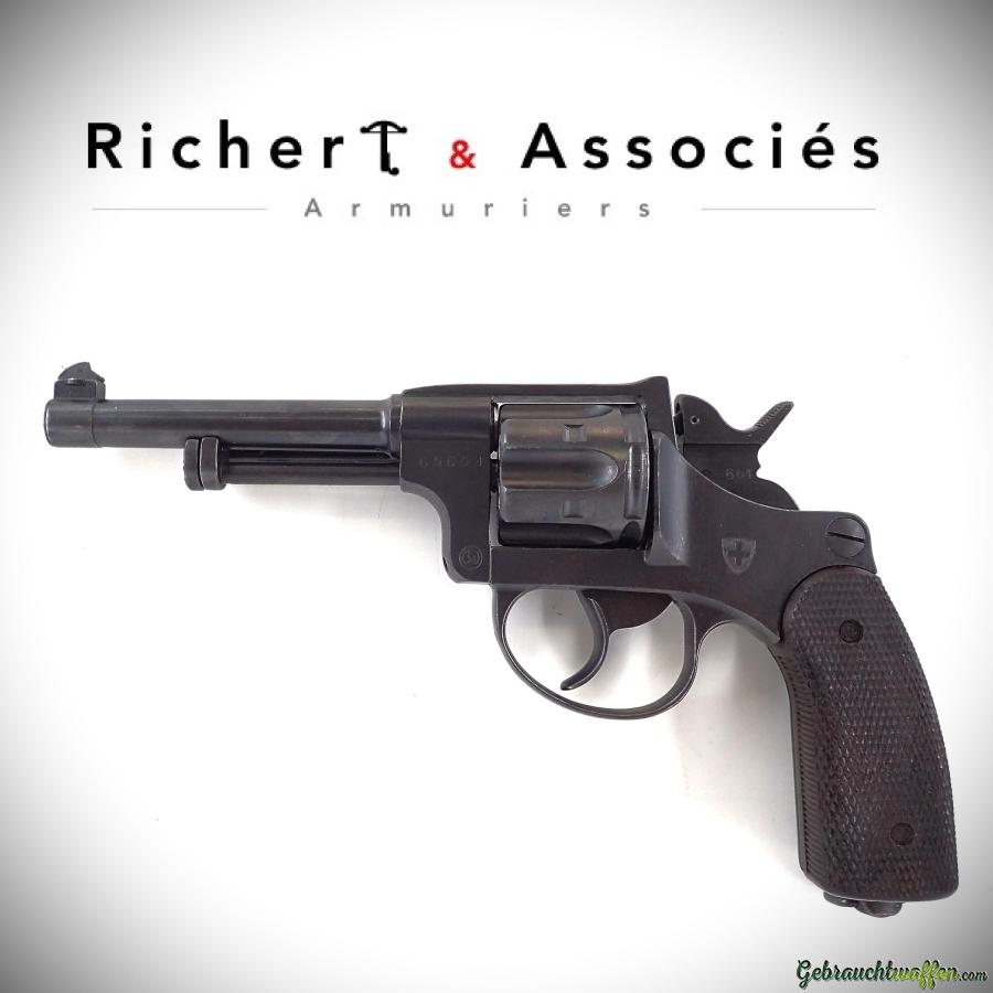 Revolver d'ordonnance Suisse W+F mod. 1929, cal. 7.5, canon de 4 pouces, détente DA/SA, en très bon état, livré avec son étui cuir.