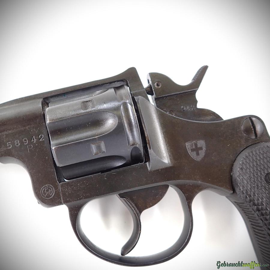 W+F Model 1929 revolver, 7.5 caliber, 4-inch barrel, DA/SA trigger, bakelite grips, in very good condition, comes with its military holster.