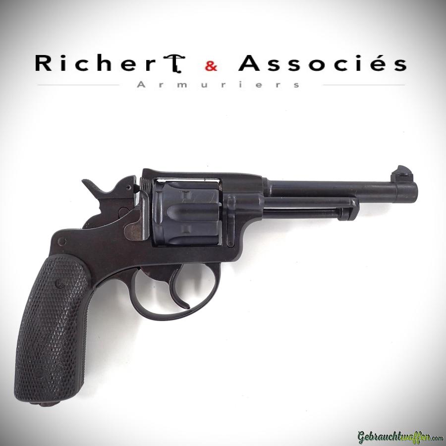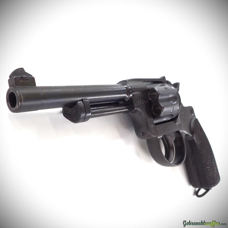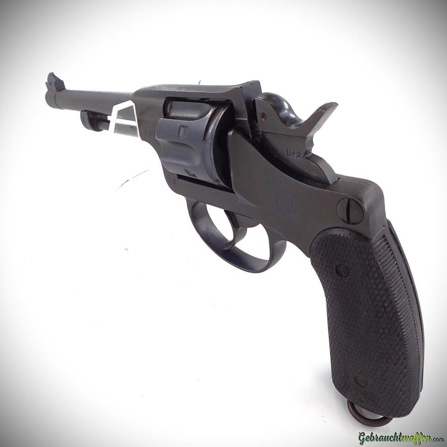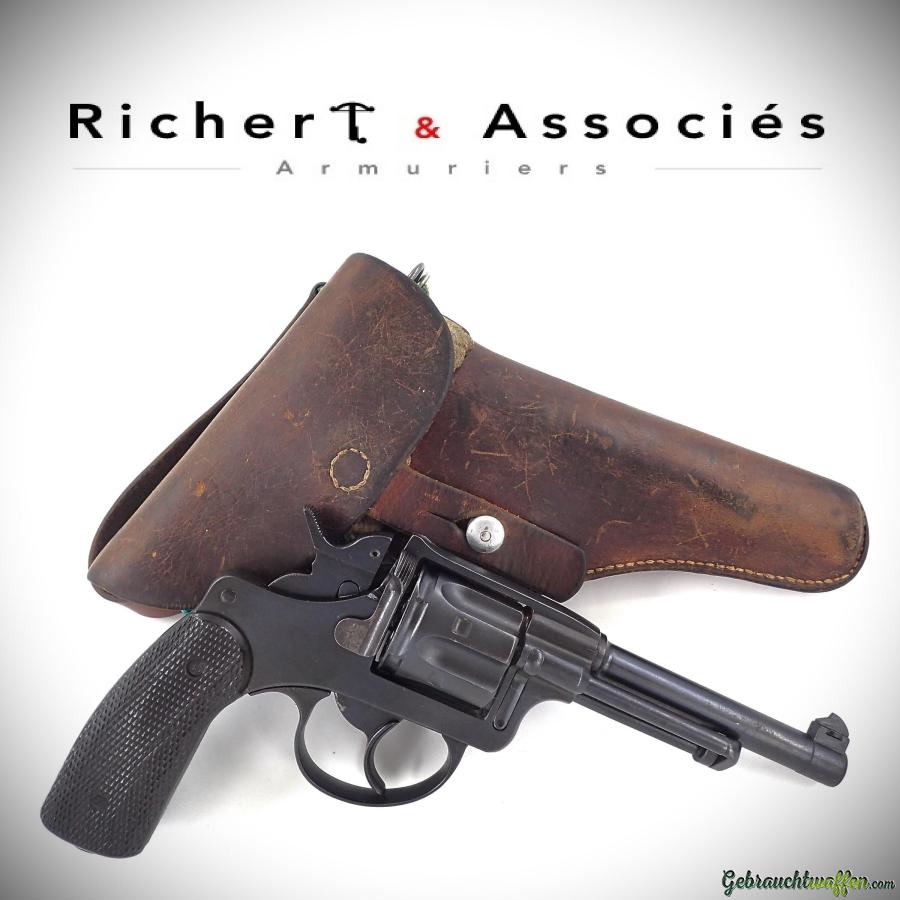 Revolver W+F mod. 1929, cal. 7.5 revolver, canon de 4 pouces, détente DA/SA, plaquettes bakélite, en très bon état, livré avec son étui militaire.