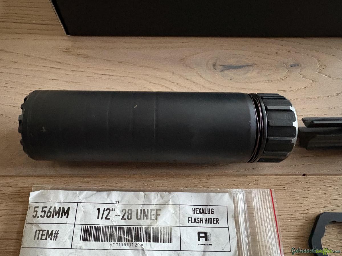 Hinweis: Für die Installation wird ein Acheron HexaLug-Mündungsaufsatz benötigt. Nicht kompatibel mit Mündungsaufsätzen im Kaliber 7.62 mm.