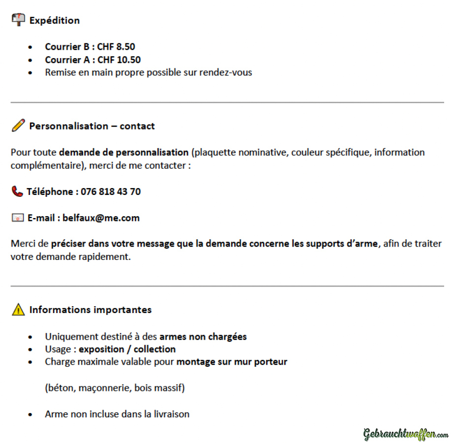 Merci de préciser dans votre message que la demande concerne les supports d’arme afin de traiter votre demande rapidement.