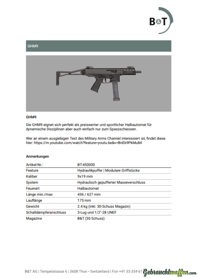 Zum Verkauf steht ein Brügger & Thomet GHM9 Sportkarabiner in sehr gepflegtem Top-Zustand.
