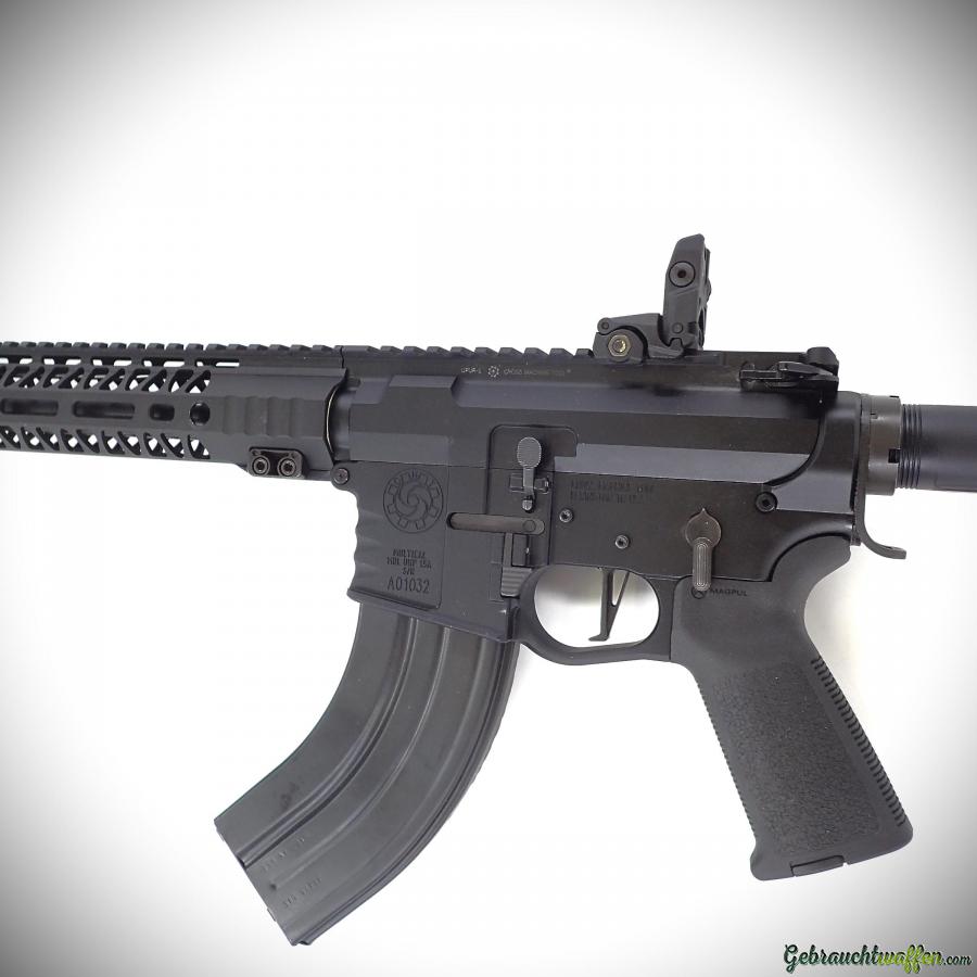 Carabine CMT mod. UHP 15A, cal. 7.62x39, détente améliorée, crosse télescopique, organes de visée rabattables, arme semi-automatique d'origine, en excellent état, livrée avec 2 chargeurs en métal de 20 coups. Possibilité d'achat avec un PAA simple avec des chargeurs de 10 coups.