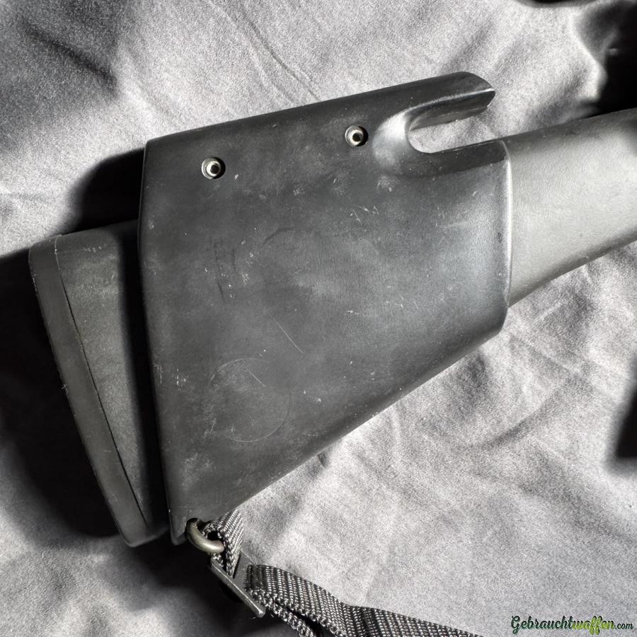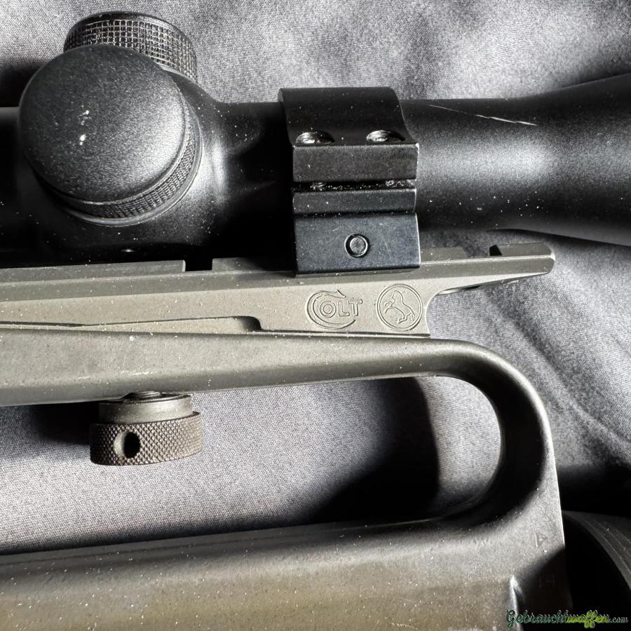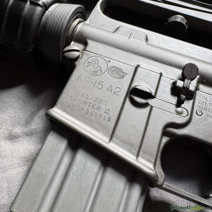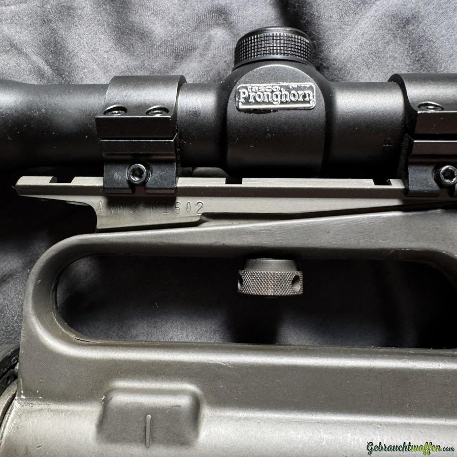 Zum Verkauf steht ein sehr schöner, recht seltener Colt AR-15 A2 Sporter II HBAR. Eine 20-Zoll-„Sniper“-Variante des Sporter II, selbst die zivile Version des M16A2 aus den 1980er Jahren. Er verfügt über einen schweren Lauf und möglicherweise einen Match-Abzug (ab Werk), der ihn für Präzisionsschüsse auf Entfernungen bis zu 600 m oder möglicherweise darüber hinaus geeignet macht. Dieses Sporter II HBAR ist mit fast allen Originalzubehörteilen ausgestattet, wie dem A2 schaft Cheek Rest und der Colt-Marke A.R.M.S. #2 Weaver-Tragegriffhalterung für Optiken. Auf dem Tragegriff ist eine Tasco Pronghorn-Optik installiert, aber ich bin bereit, die Waffe auch ohne die Optik zu verkaufen. Darüber hinaus wird das Gewehr mit einem einfachen Nylonriemen, einer gepolsterten Tragetasche mit Magazintaschen, einem Reinigungsset, das in einem entsprechenden Fach im Schaft aufbewahrt wird, und einem originalen Colt-Magazin für 20 Schuss geliefert.