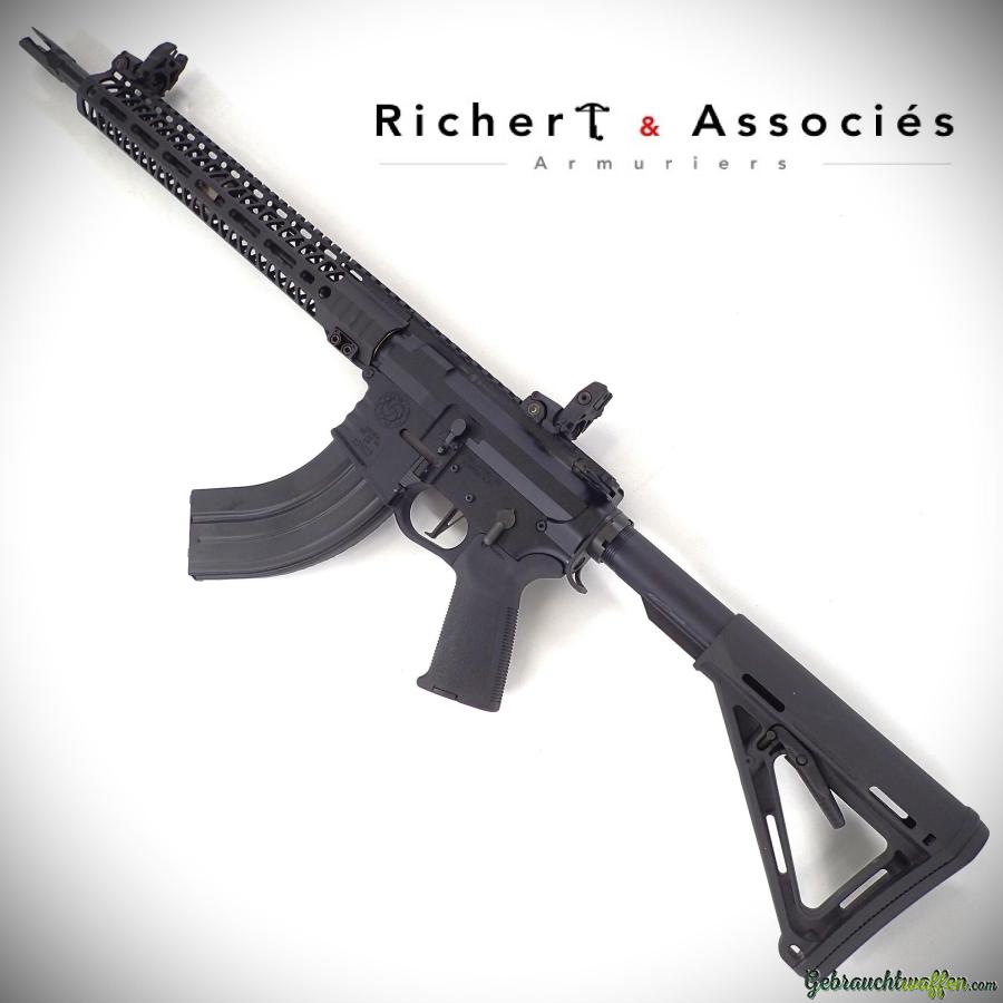 Carabine CMT mod. UHP 15A, cal. 7.62x39, détente améliorée, crosse télescopique, organes de visée rabattables, arme semi-automatique d'origine, en excellent état, livrée avec 2 chargeurs en métal de 20 coups. Possibilité d'achat avec un PAA simple avec des chargeurs de 10 coups.