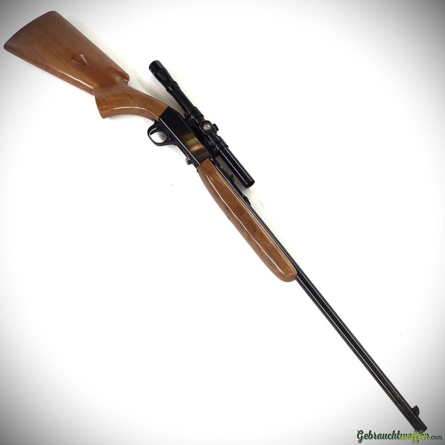 FN-Halbautomat, Kaliber .22 LR, zerlegbar, verstellbare Kimme, glatter Holzschaft und Vorderschaft, in sehr gutem Zustand, inklusive Zielfernrohr.