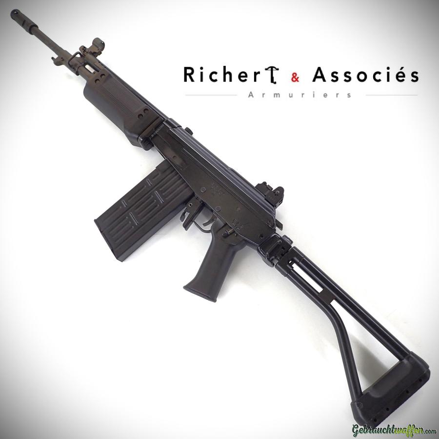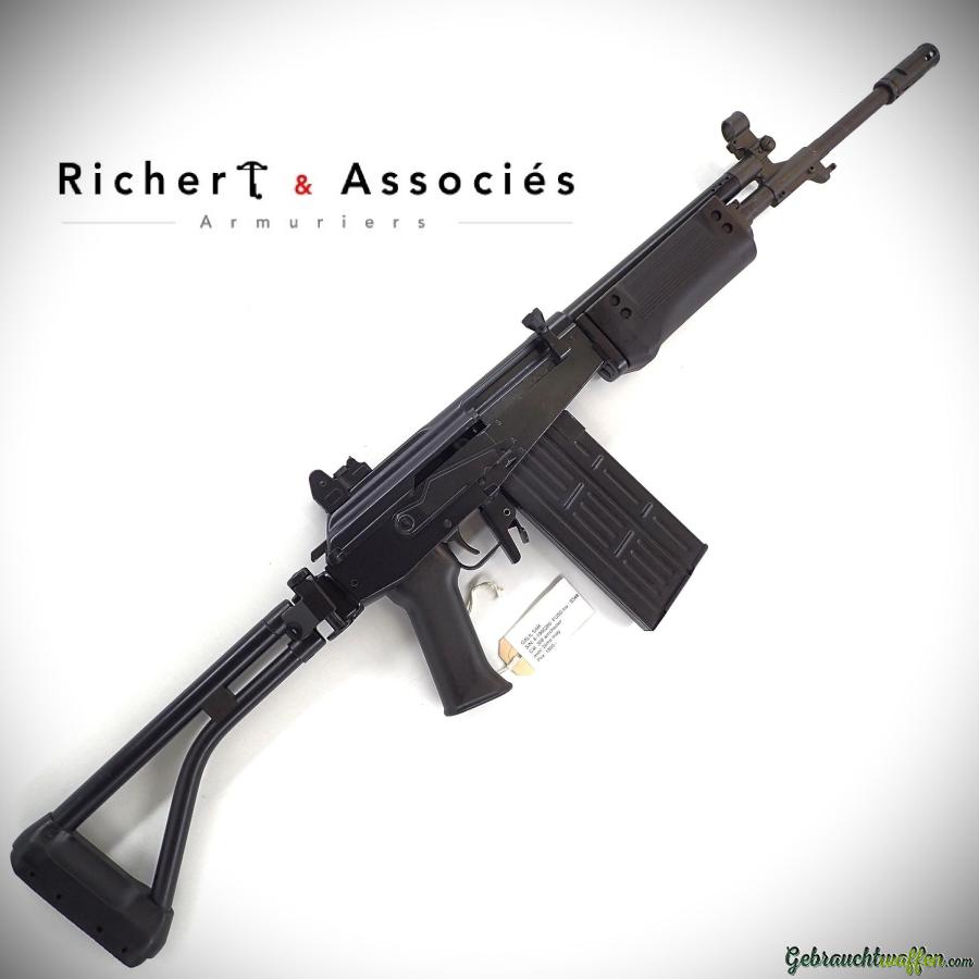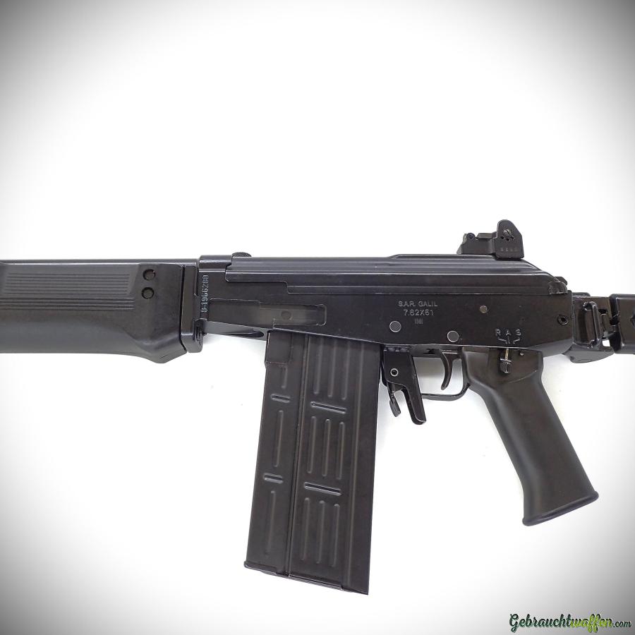 Galil SAR rifle, .308 Winchester caliber (7.62x51 NATO), original, unmodified, and fully functional automatic weapon, adjustable rear sight, folding stock, in very good condition, comes with two magazines. Special cantonal authorization required.