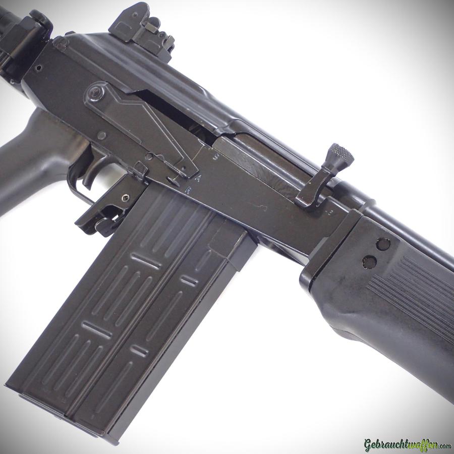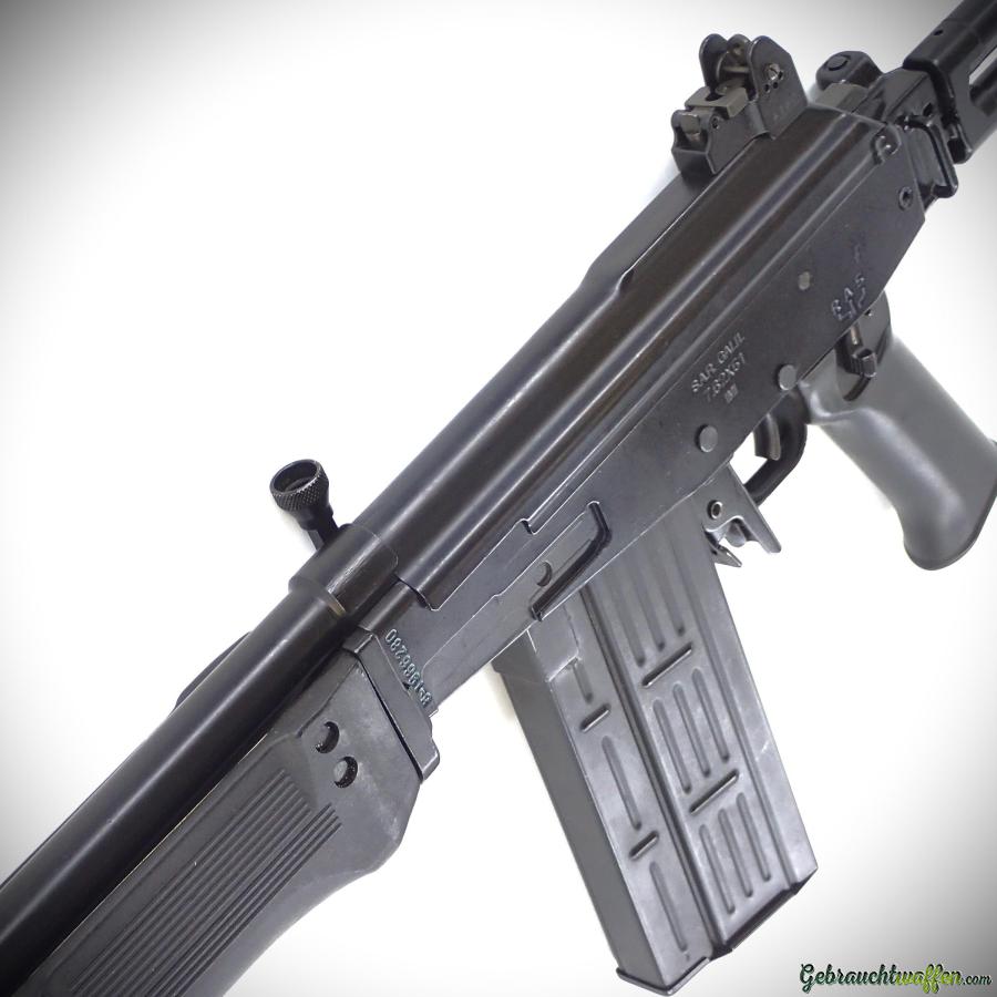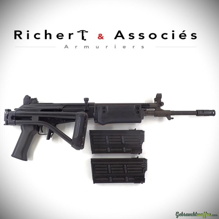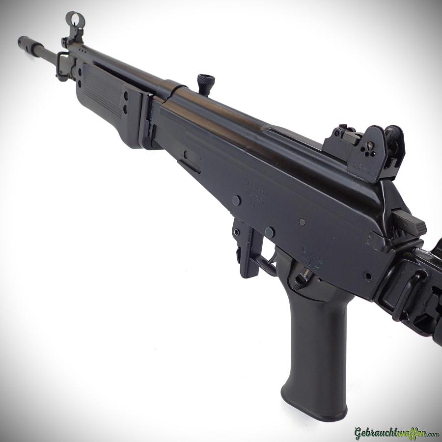 Galil SAR Gewehr, Kaliber .308 Winchester (7,62x51 NATO), original, unmodifiziert und voll funktionsfähig, automatische Waffe, verstellbare Kimme, Klappschaft, in sehr gutem Zustand, inklusive zwei Magazinen. Kantonale Sondergenehmigung erforderlich.