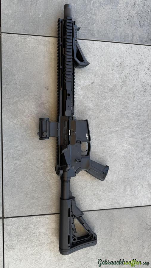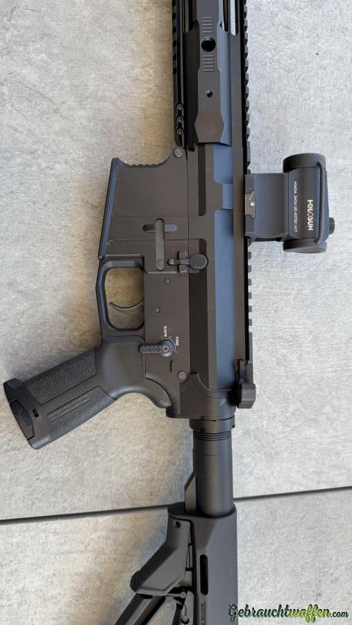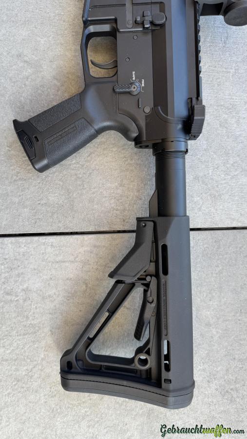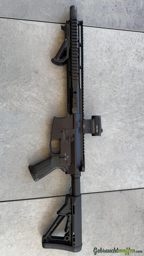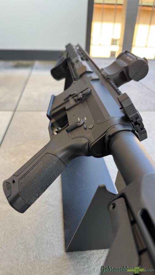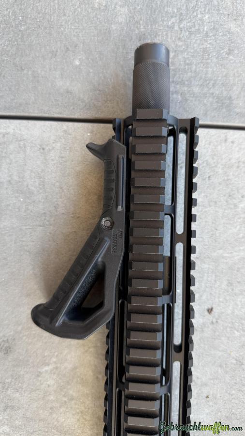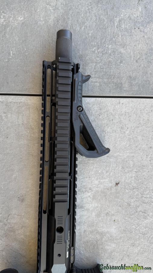 Die Waffe ist in einwandfreiem Zustand und hat wurde bisher lediglich mit knapp 400 Schuss beschossen. Die Waffe ist mit einem Quad-Rail ausgerüstet und verfügt über einen Radian-Ladebügel. Sie verfügt über einen Mündungsfeuerdämpfer der das gesamte Gas nach vorne leitet und einen kleiner Feuerspucker ist.