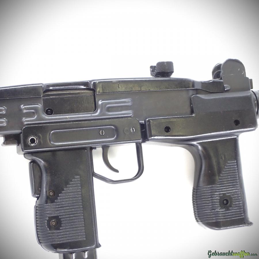 IMI machine pistol, mod UZI Standard, cal. 9mmP, with Hebrew markings, in excellent condition, supplied with original handguard, pouch of 4 x 32-shot magazines, bayonet and magazine. The bayonet has a symmetrical blade and is optional, purchase with exceptional authorization.