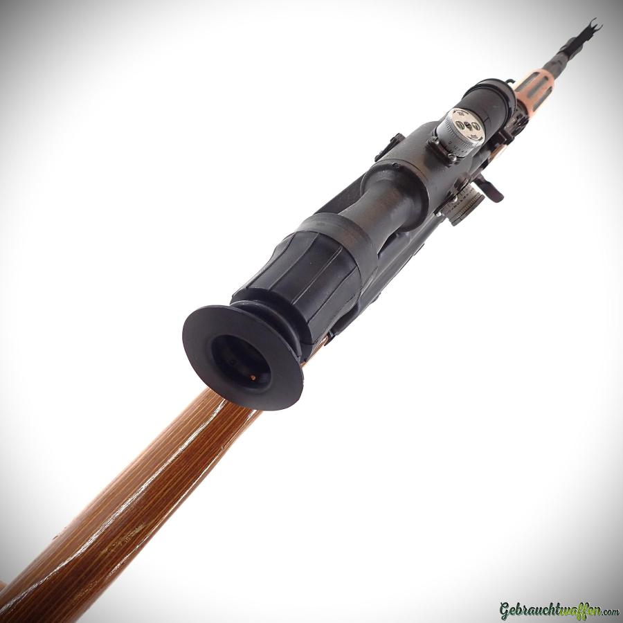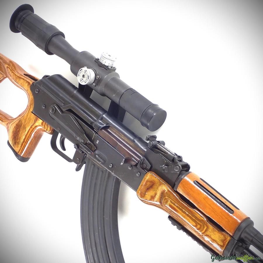 Kalaschnikow AK-47 Gewehr, Kaliber 7,62x39 mm, halbautomatisch, ursprünglich mit Dragunow-Schaft ausgestattet, in sehr gutem Zustand, inklusive Zielfernrohr und 20-Schuss-Magazin. Ein Pistolengriff ist mit einem 10-Schuss-Magazin ausreichend.