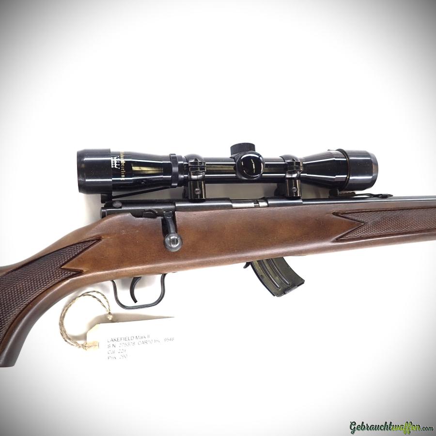 Lakefield Mark II Repetiergewehr, Kaliber .22 LR, 10-Schuss-Magazin, Schaft aus gemasertem Holz, verstellbare Kimme, sehr guter Zustand, inklusive Zielfernrohr.