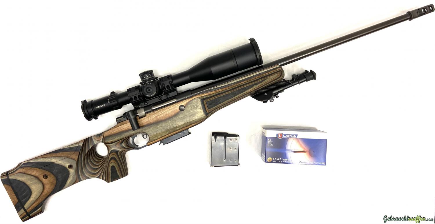 Angeboten wird ein Lynx 94 Target Geradezugrepetierer mit zwei Magazinen, Harris Zweibein, Spuhr 44 MOA Montage und Kahles K624i MSR Zielfernrohr. Dazu sind 500 Schuss Lapua 6.5x47 Lapua 136 grn Munition.