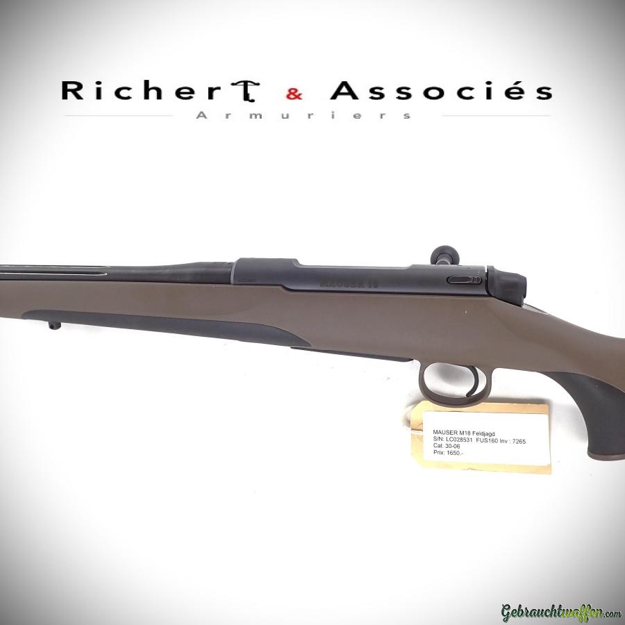 Fusil de chasse Mauser, mod. M18 Feldjagd, cal. 30-06, fonctionnement à verrou, crosse en polymère, à l'état de neuf, livré avec son manuel et accessoires d'origine.