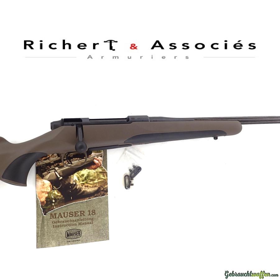 Fusil de chasse Mauser, mod. M18 Feldjagd, cal. 30-06, fonctionnement à verrou, crosse en polymère, à l'état de neuf, livré avec son manuel et accessoires d'origine.