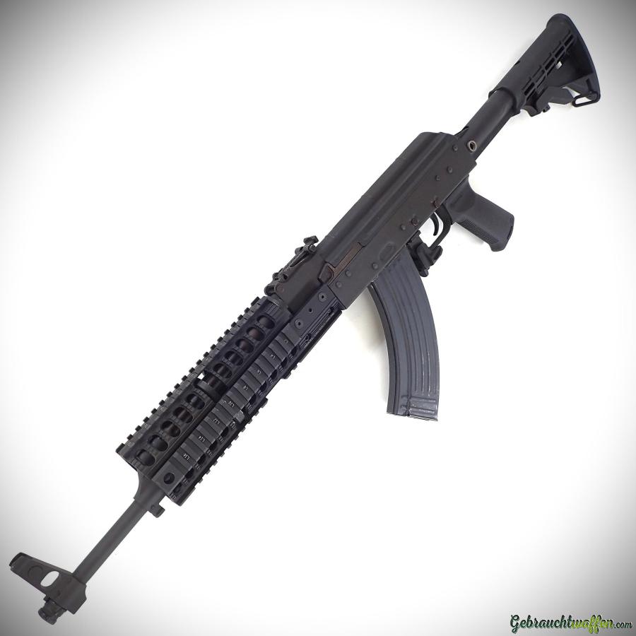 Pioneer Arms AK47 Gewehr, Kaliber 7,62x39 mm, 36 cm (14 Zoll) Lauf, original halbautomatisch, ausgestattet mit einem Aluminium-Handschutz mit vier Picatinny-Schienen und einem Teleskopschaft. Sehr guter Zustand, inklusive 30-Schuss-Magazin. Bei Lieferung mit 10-Schuss-Magazin kann ein Standard-Pistolengriff erworben werden.