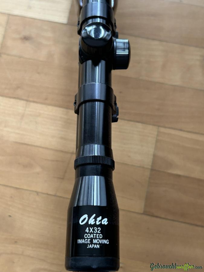 Optik: Montiert ist ein zeitgenössisches Ohta 4x32 Zielfernrohr. Ohta ist bekannt für hochwertige japanische Fertigung ("Made in Japan") aus den 70er/80er Jahren mit klarer, vergüteter Linse – kein moderner Billig-Kunststoff.