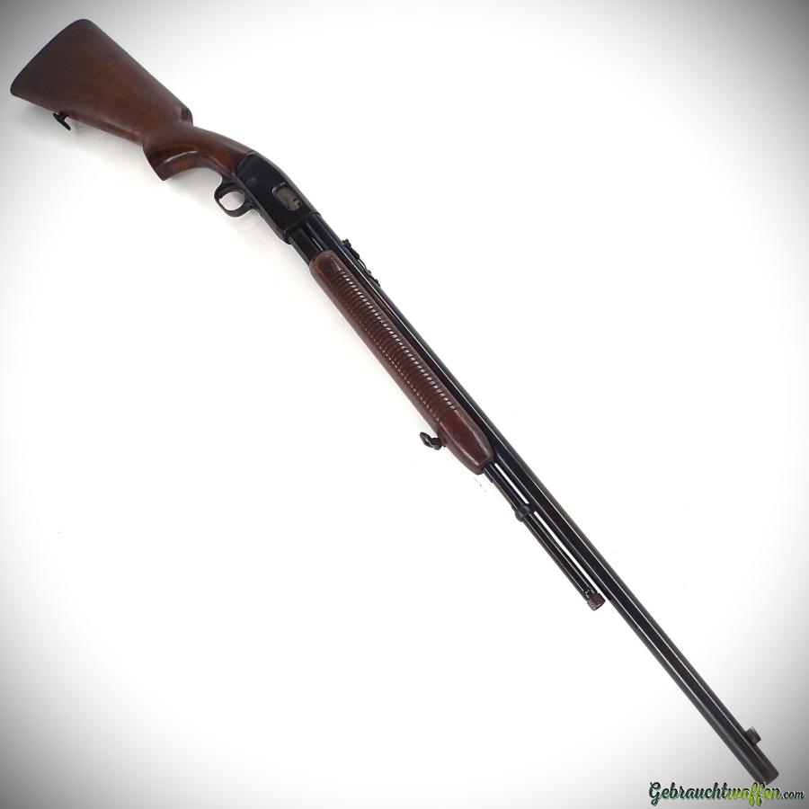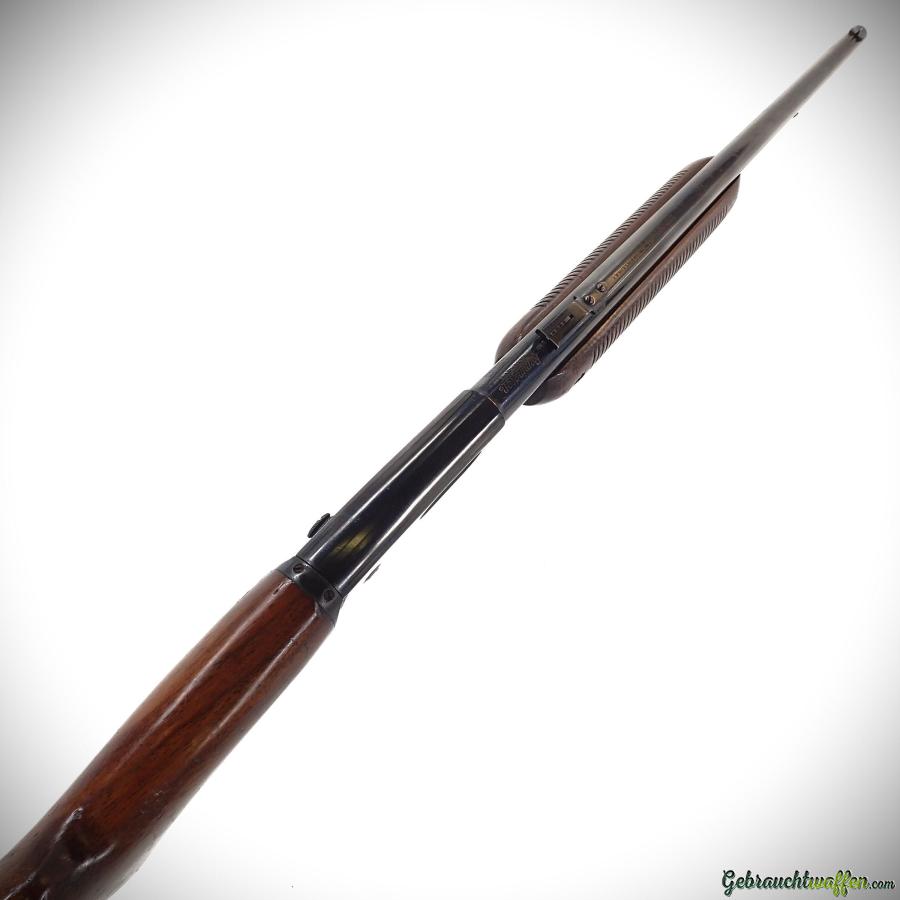 Carabine à pompe Remington mod Fieldmaster 121, cal. 22LR, à chargeur tubulaire sous le canon, hausse réglable en hauteur, en bon état.