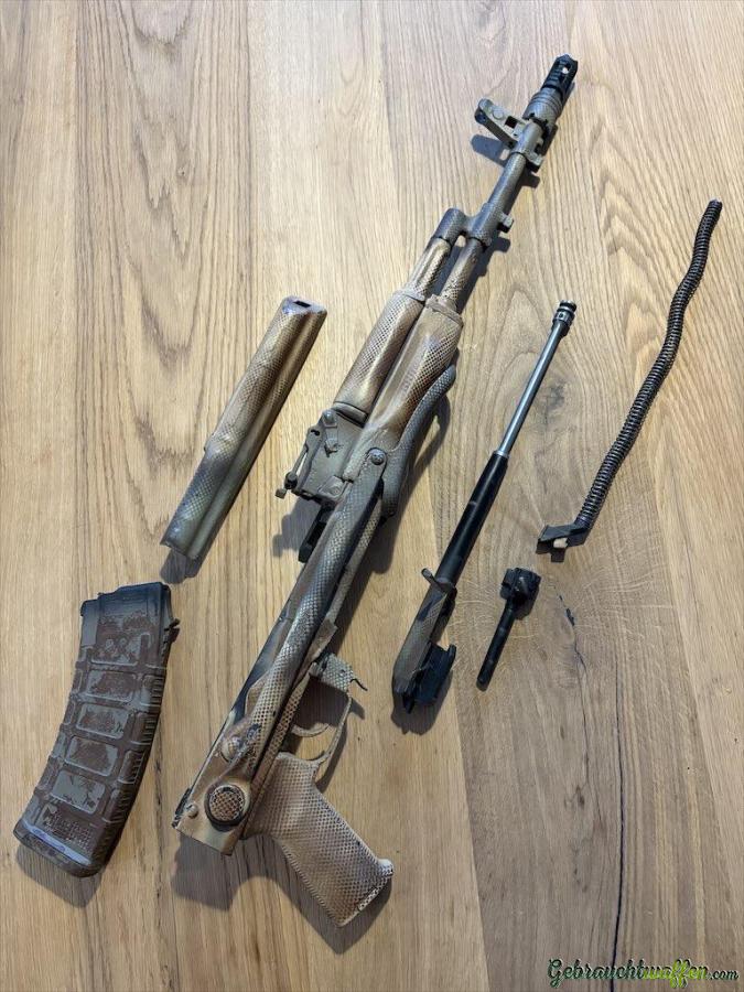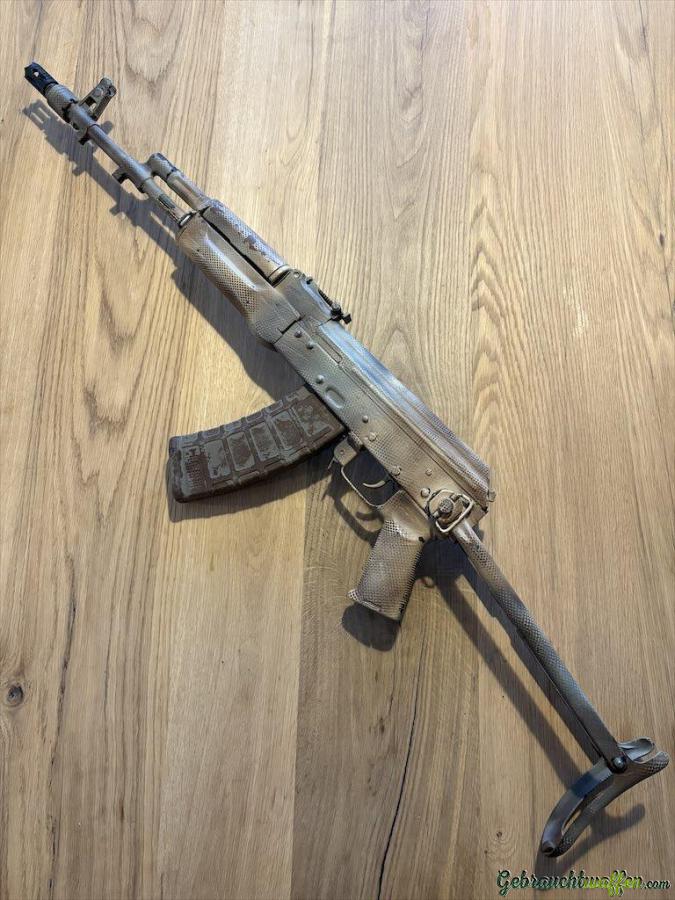 Zum Verkauf steht eine halbautomatische ISD AK74 im Kaliber 5.45x39mm mit einem Clawgear Feuerscheindämpfer, welcher mit dem B&T Rotex V Schalldämpfer kompatibel ist.