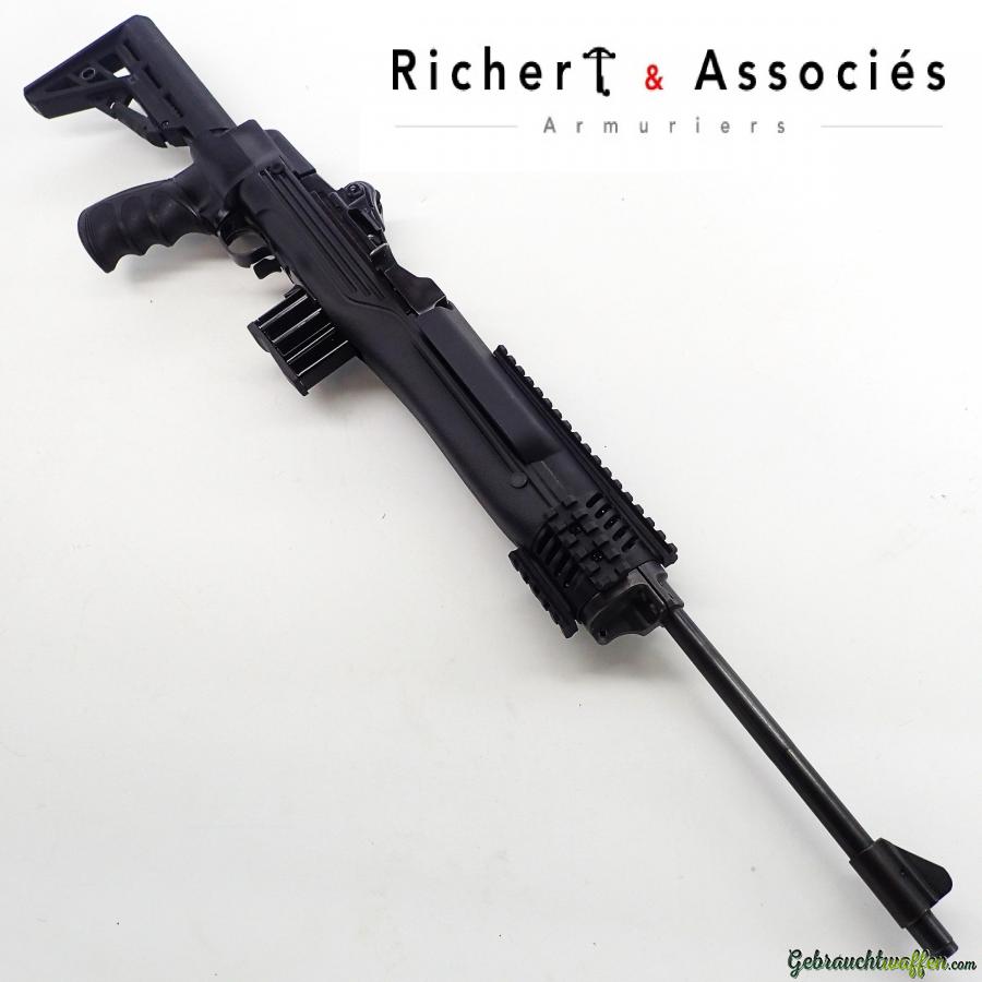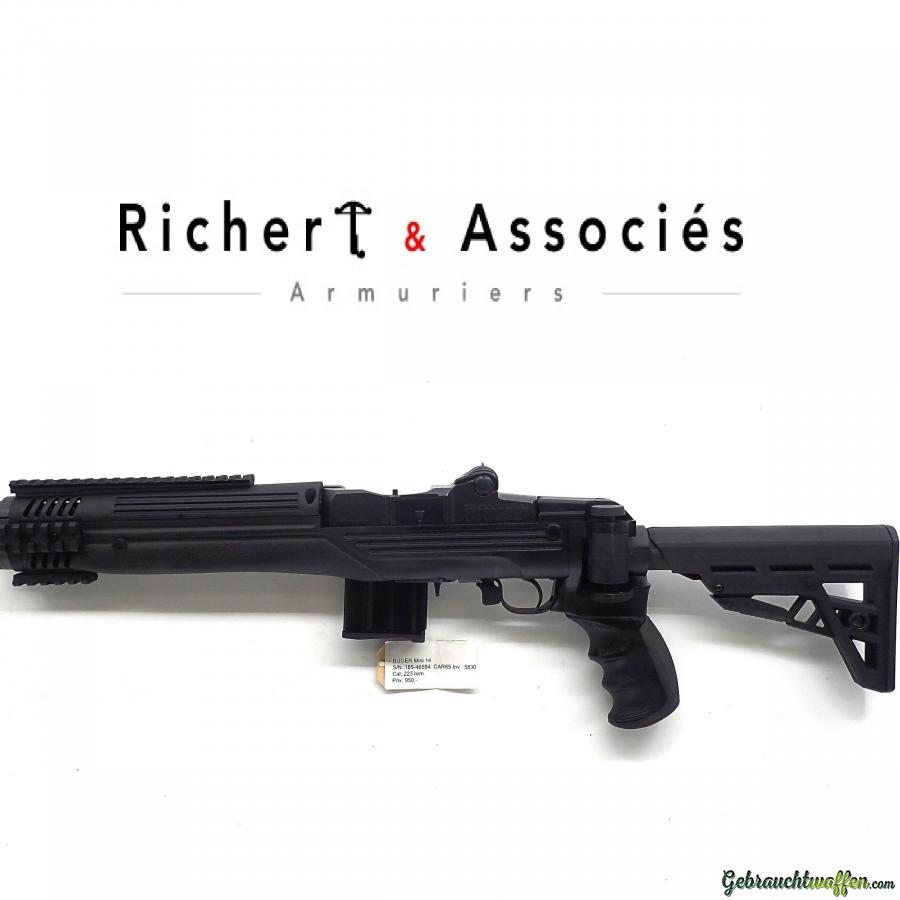 Carabine Ruger, modèle Mini-14, cal. 223Rem, avec garniture en matériaux composite/plastique, poignée pistolet et crosse télescopique pliante, en très bon état.