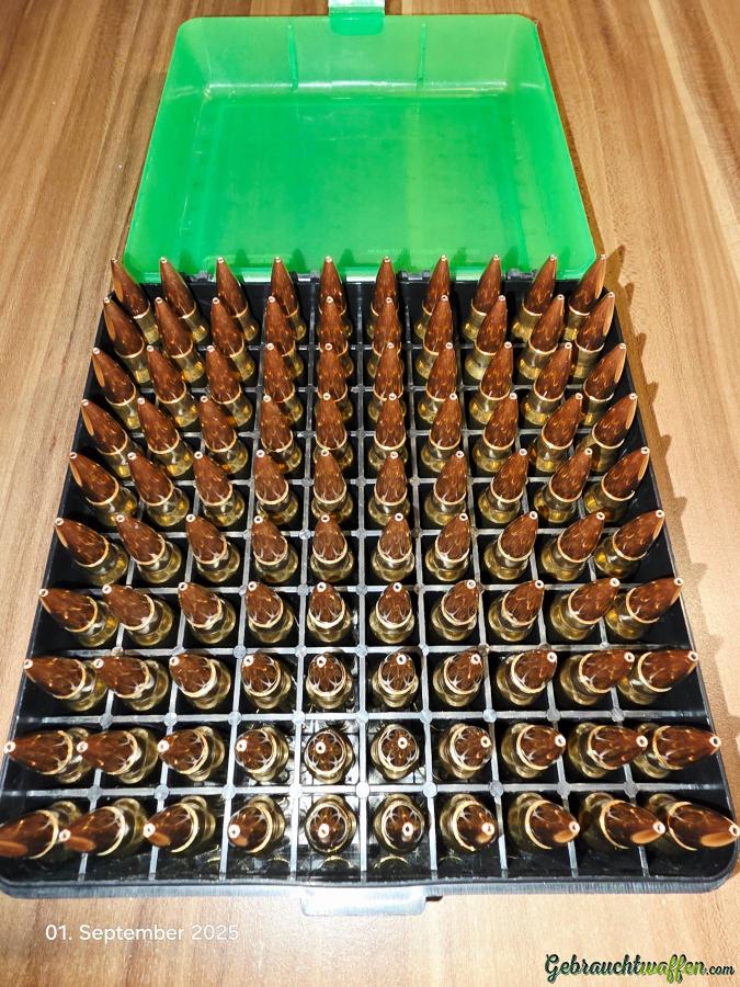 • Handgeladene Laborierungen wurden auf die Waffe abgestimmt; werden aus Haftungs-/Rechtsgründen nicht Bestandteil des Kaufvertrags. Komponenten/Restbestände ggf. separat, nur wenn rechtlich zulässig.