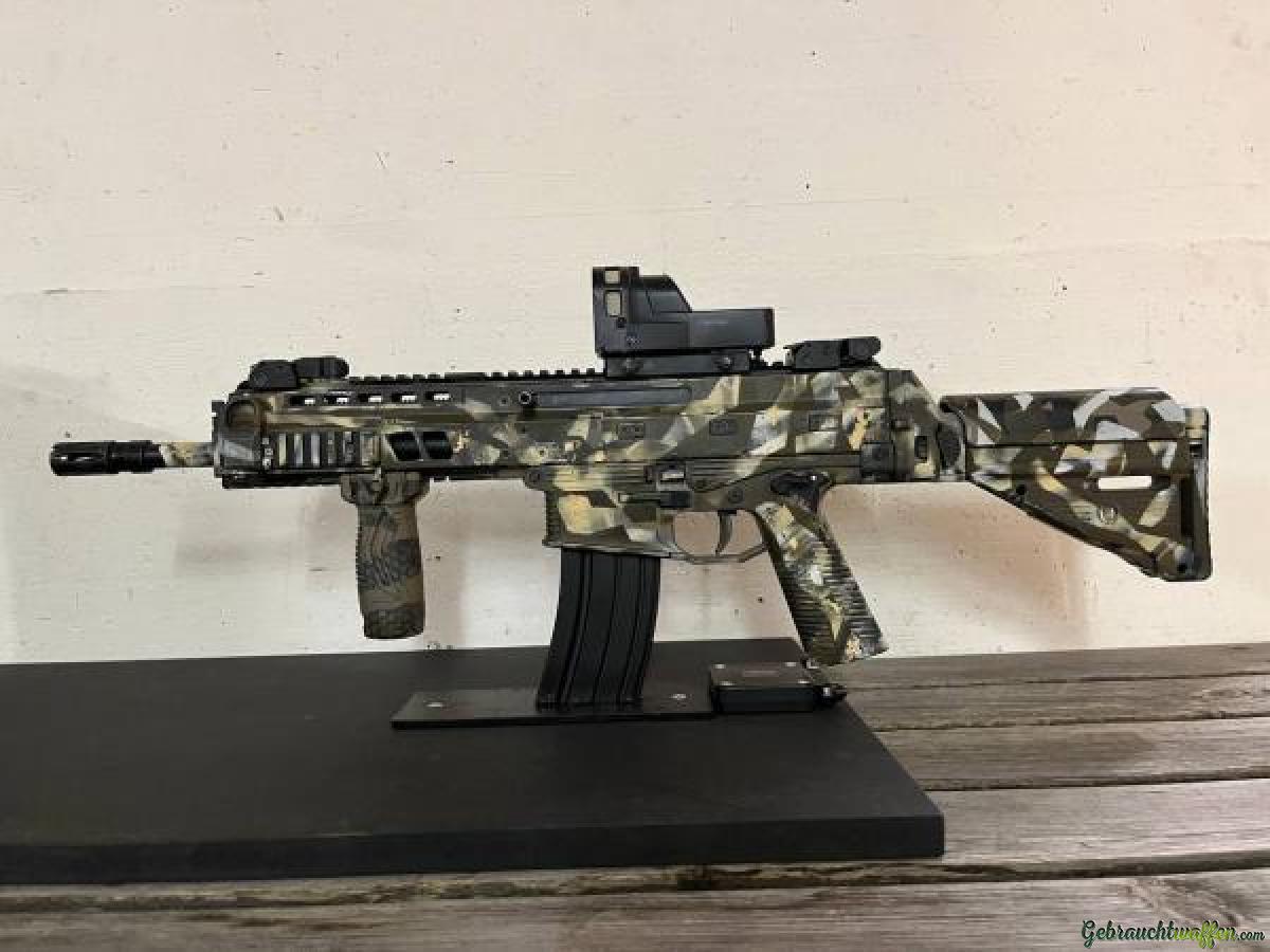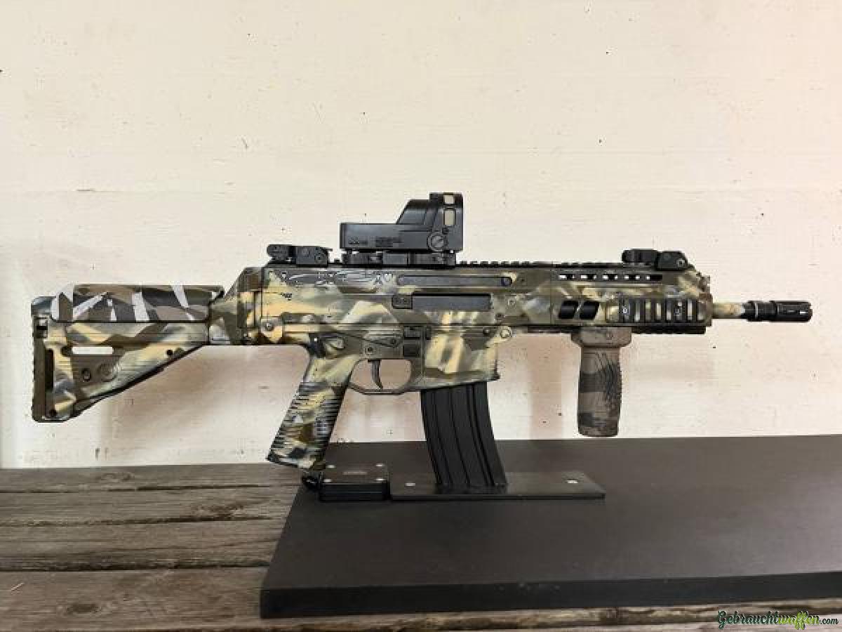 Halbautomat mit Zieloptik Mepro M21. NFM EC-Paint Sprühfarbe kann problemlos wieder entfernt werden. Entsprechendes Mittel in Spraydose kann ich mitgeben. Verkauf gemäss Waffenrecht.