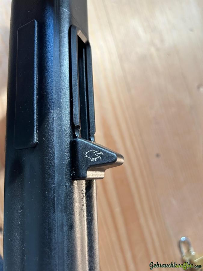 Diese Ausführung des AUG verfügt über Picatinny-Schiene am Lauf. Zubehör, wie der Frontgriff, können demnach nach Belieben ausgetauscht werden.