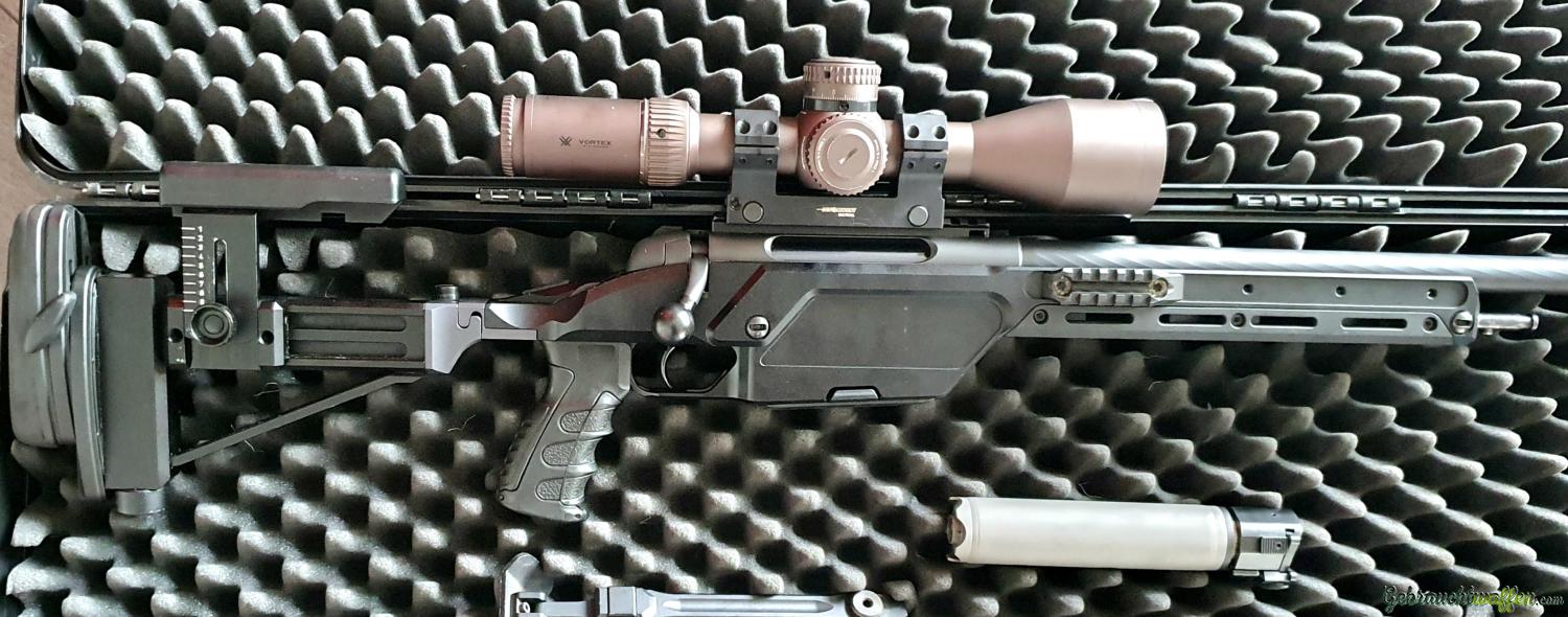 STEYR MANNLICHER Scharfschützengewehr im Kaliber 338LM mit NEUEM LAUF (Belege vorhanden) -- Zielfernrohr VORTEX Razor 4.5-27 x 56 mit Mildot Absehen -- Blockmontage INNOMOUNT 34 mm -- Schalldämpfer ROTEX von Brügger & Thomet -- Absolut Spielfreier Klappschaft mit Erdsporn -- Versa-Pod Aufnahme für das Zweibein von FORTMEIER -- 2 Magazin a 6 Schuss -- Kunststoffkoffer -- Verkauf gegen WES -- Weitere Infos oder Besichtigung auf Anfrage