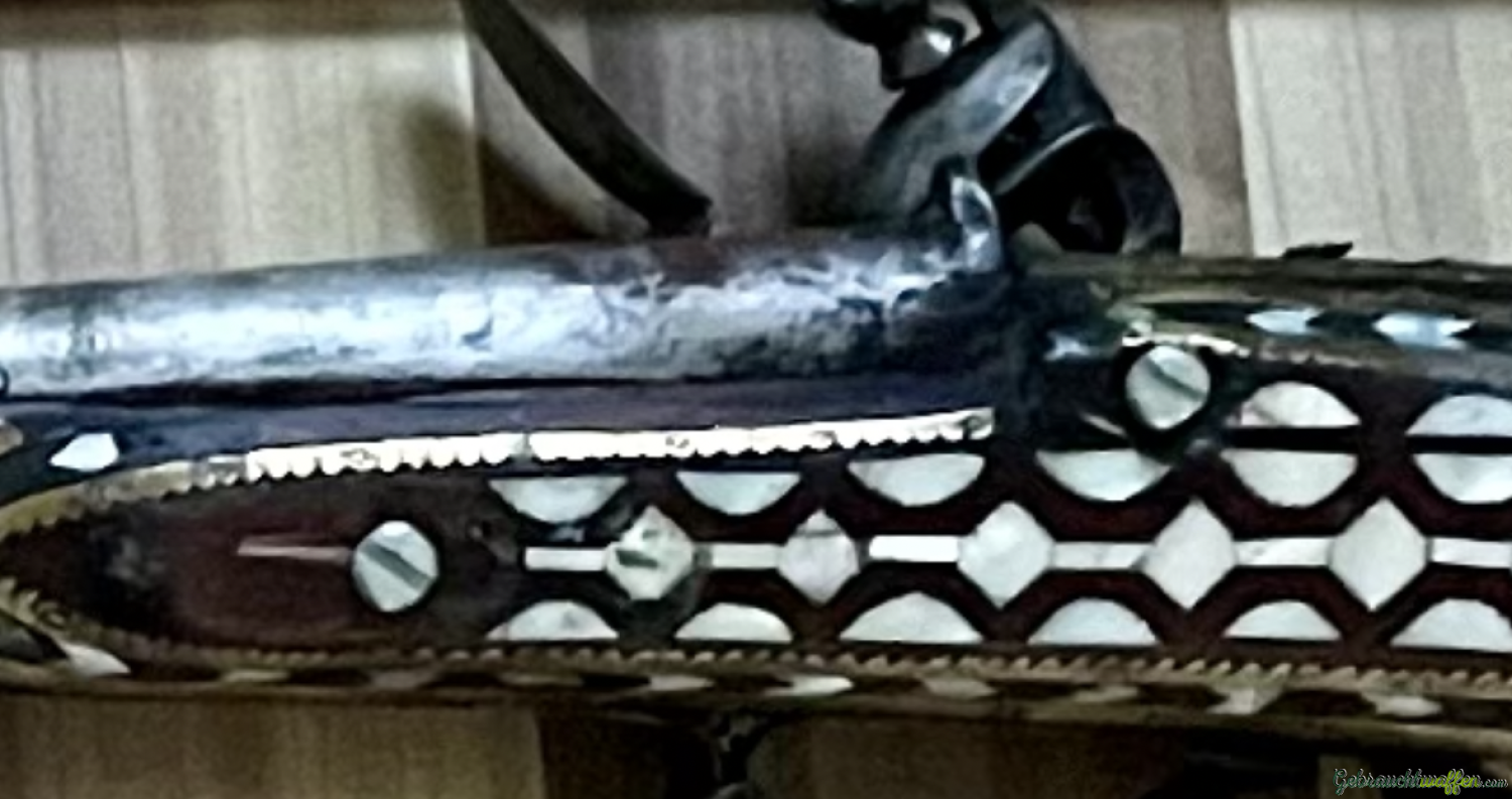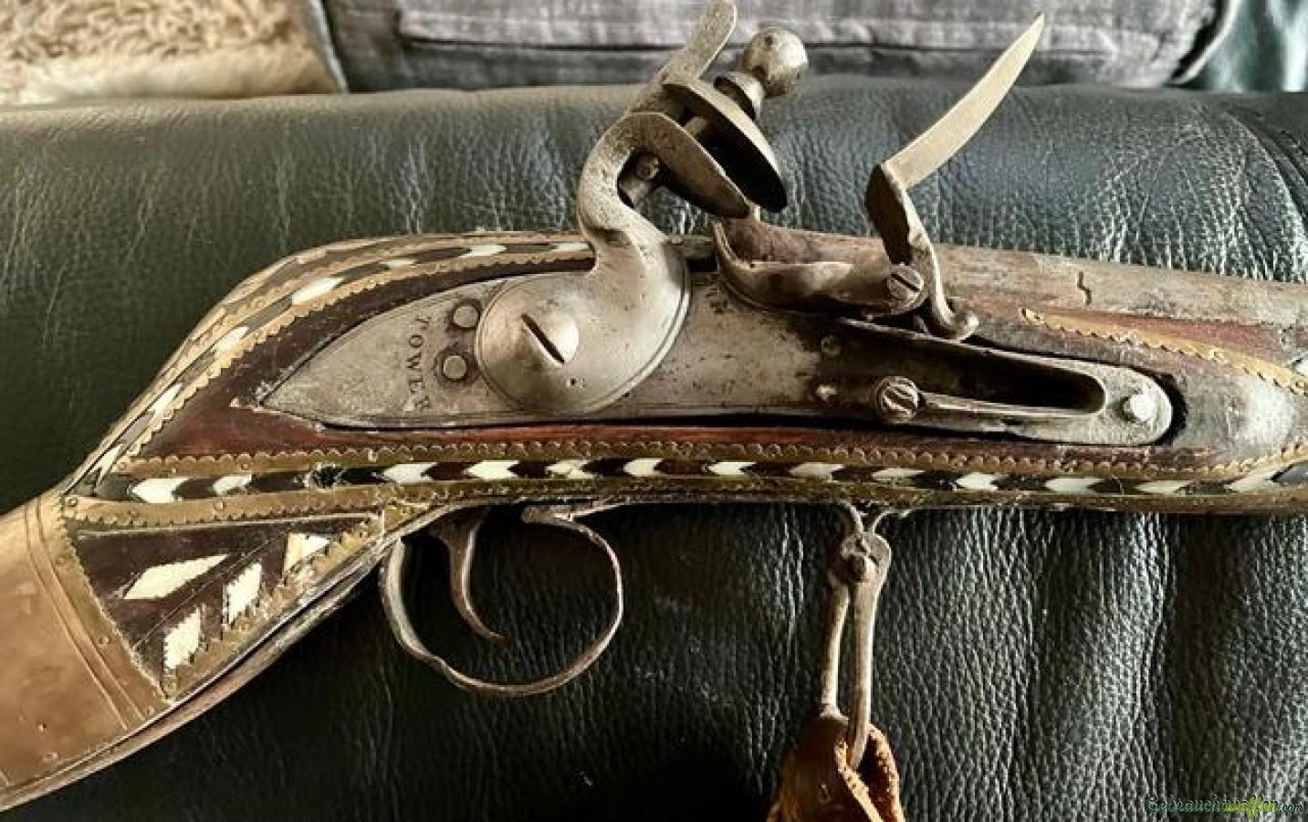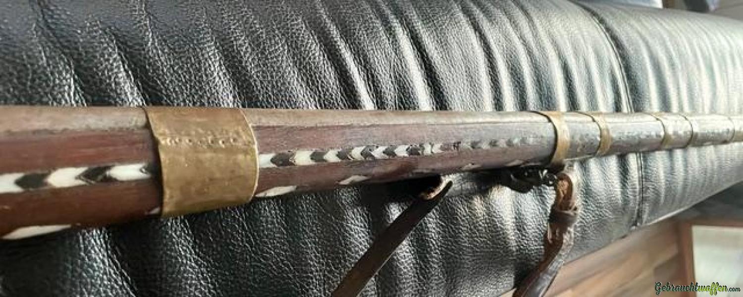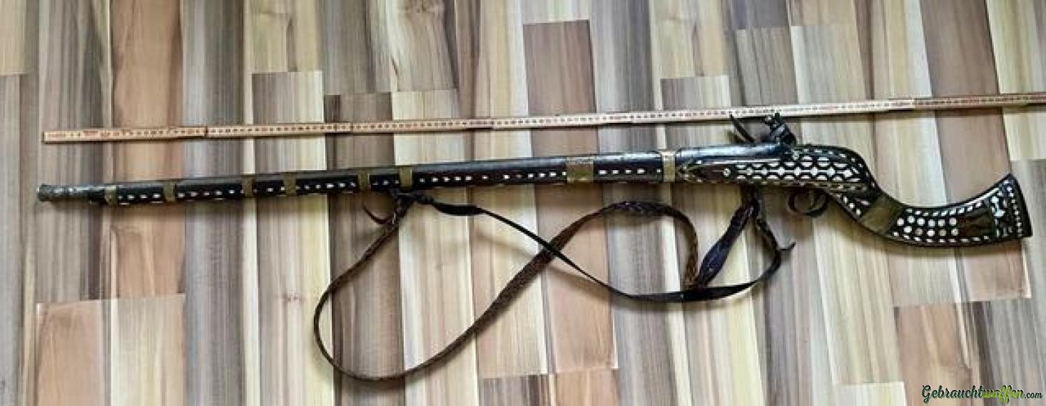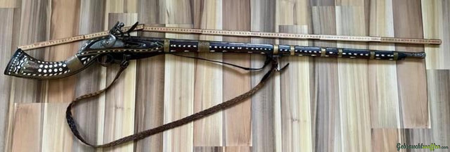 Ich kann nicht viel über das Gewehr sagen, sieht orientalisch aus und wurde mit viel Aufwand gefertigt. Das Schloss (Tower) ist aus England. Die Dekoration ist höchtswahrscheinlich Knochen und Messing. Siehe Bilder