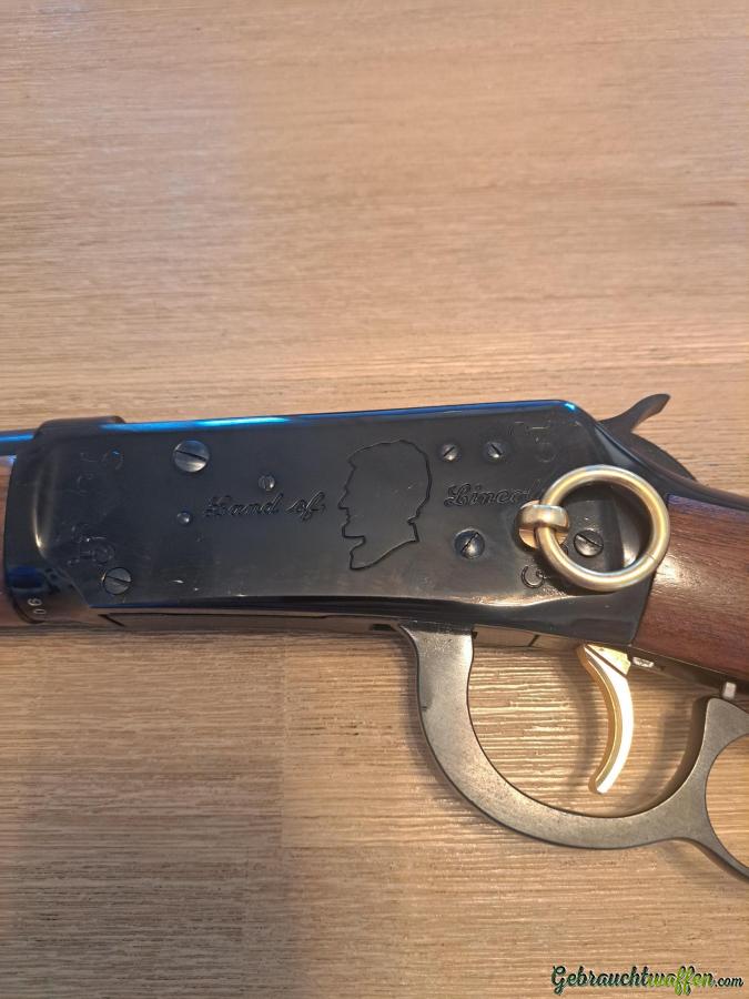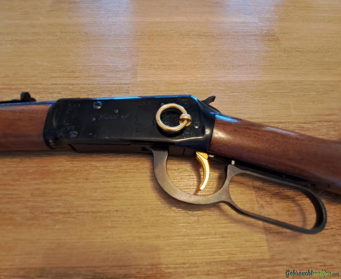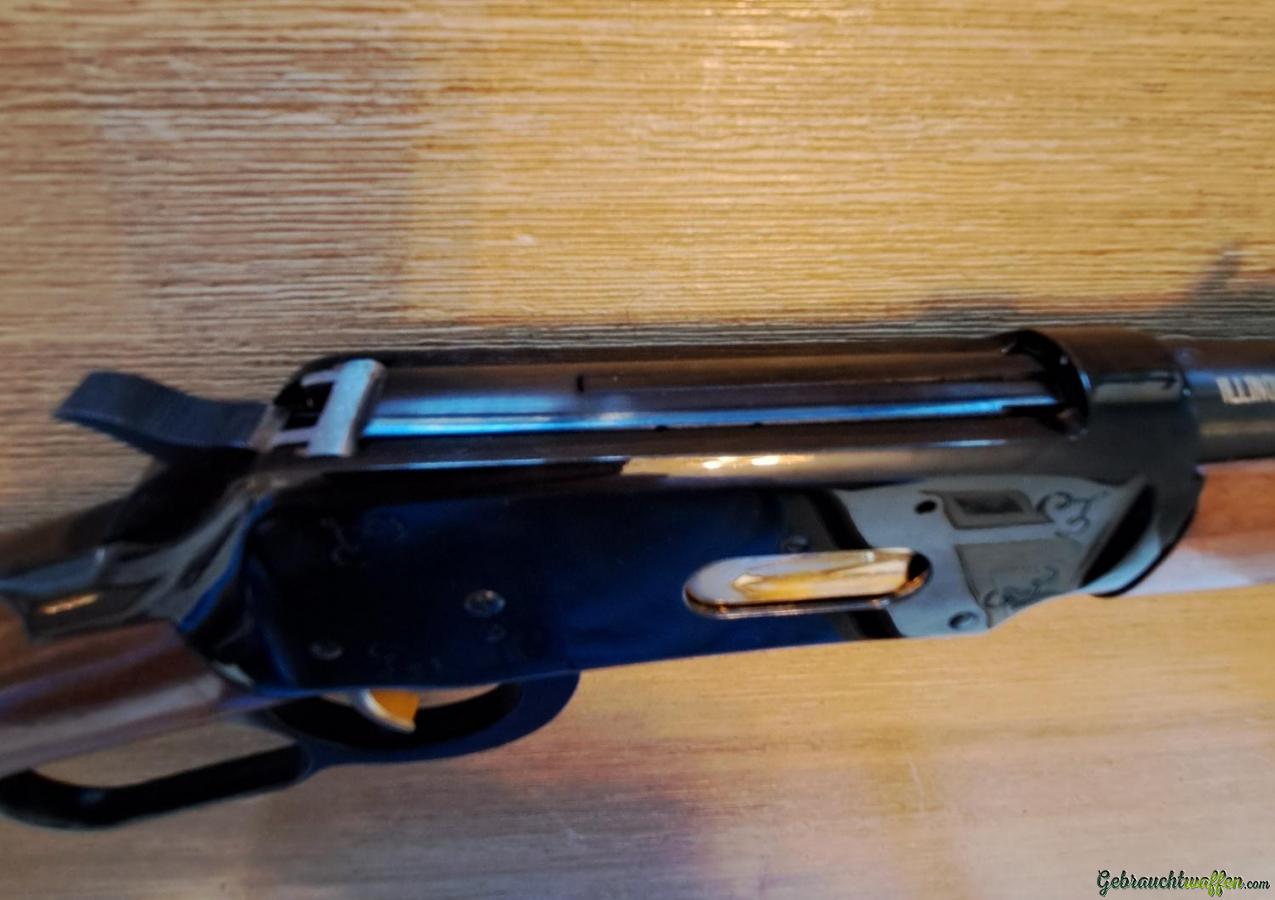 Messingplatte hinten am Schaft, Messing Abzug und Messing Ladeklappe. Nussbaum Holz hochglanz lackiert.