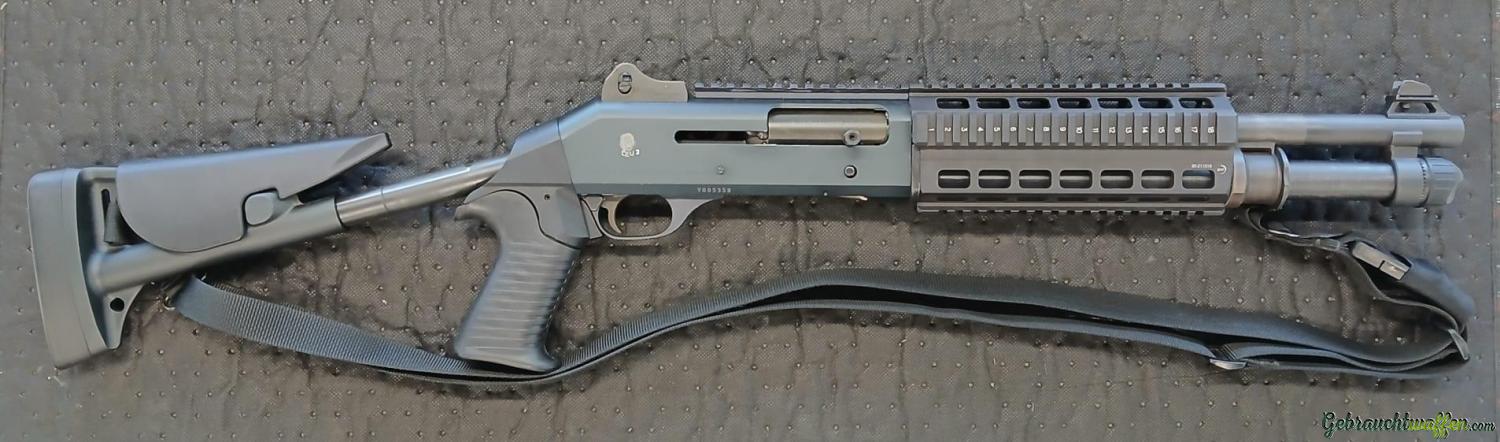 Benelli M4 Super 90, 37cm Lauflänge mit Teleskopschaft. Zusand: gebraucht, voll funktionsfähig. Behördenwaffe, Spezialeinheit "Leu". Gemäss Bild