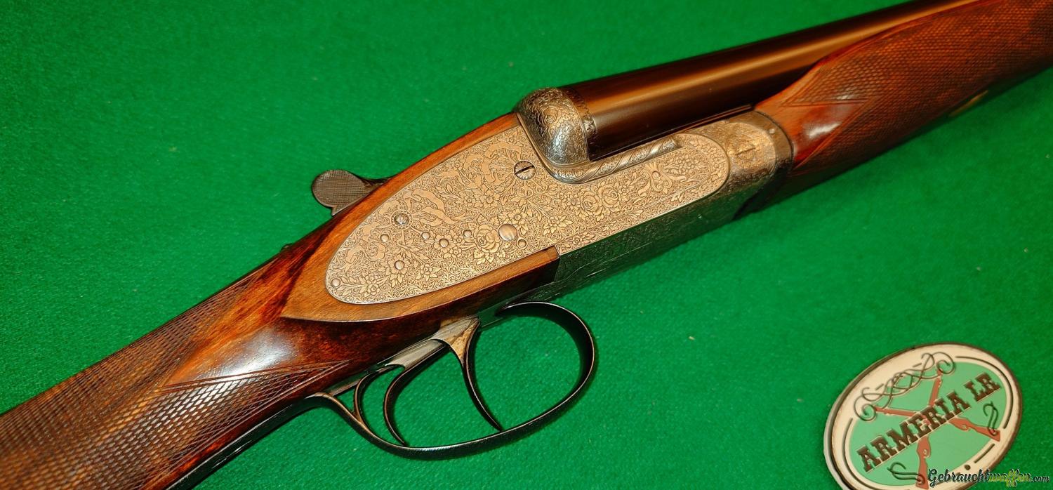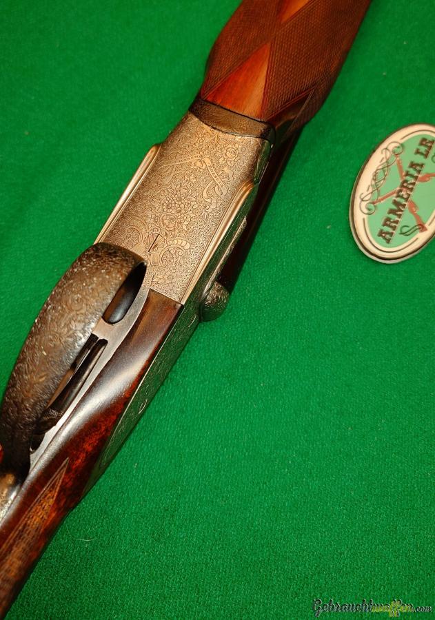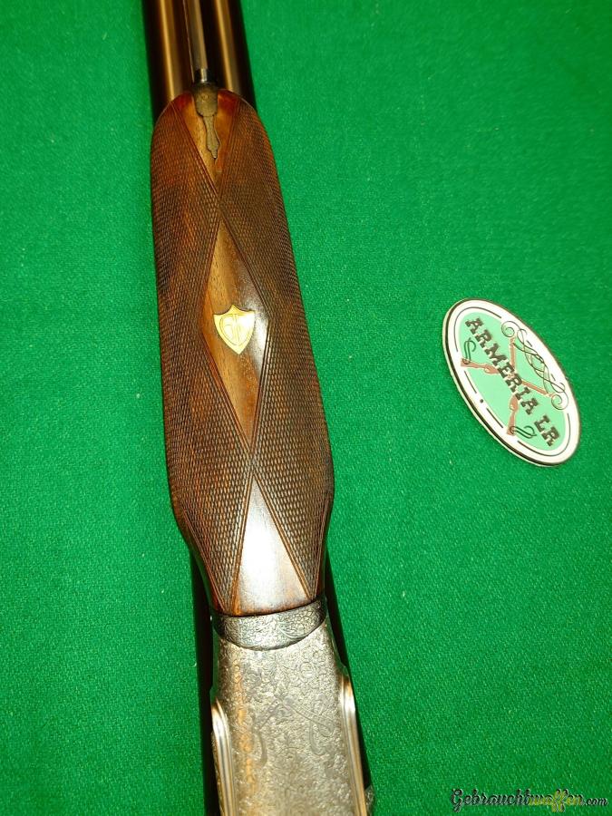 Franchi Imperiale Montecarlo cal.12, arma pari al nuovo, anno 1951, legni in radica di noce grado 5 tirati a olio, astina a coda di castoro, canne 72cm 1/1 forate 18.3 peso 1,280kg, dotata di valigetta in pelle, arma splendida.