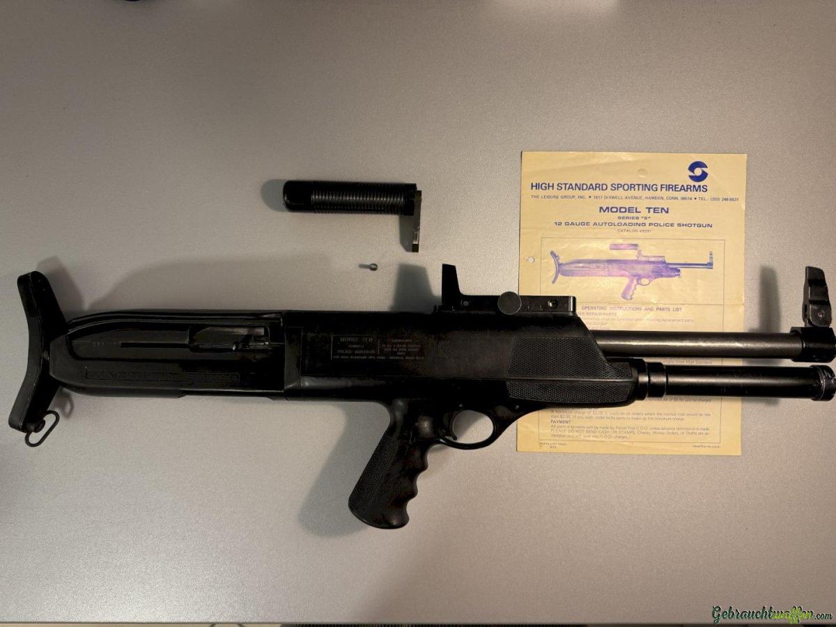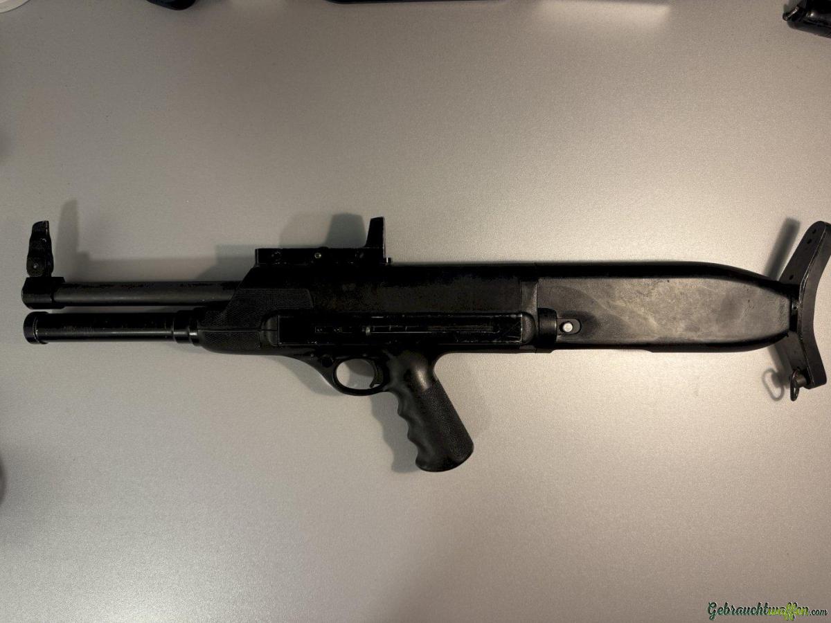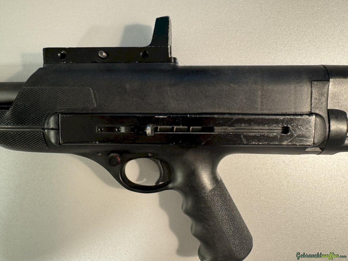 Eine High Standard 10B (Model 10 Series B) halbautomatische Bullpup-Flinte aus den 60er / 70er Jahren. Die Konstruktion geht auf einen Polizisten aus den USA zurück, der "eine Schrotflinte wollte, die auch einhändig zu bedienen ist".
