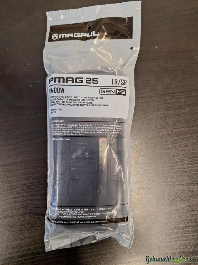 Das 7.62x51 NATO (.308 Winchester) PMAG 25 LR/SR GEN M3 Window ist ein leichtgewichtiges und Magazin mit hoher Zuverlässigkeit alle Waffen die PMAG kompatibel sind. Kapazität von 25 Schuss, schlag- und druckfestem Polymer, konstanten Kurvenkörper einen anti-kippenden Follower.