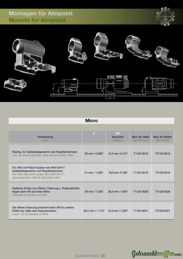 Zum Verkauf steht eine ERA-TAC Aimpoint Micro-Halterung, Modell T2120-0018, für Gewehre vom Typ HK416 und 417, die für die gemeinsame Verwendung mit den werkseitigen mechanischen Visieren ausgelegt ist.